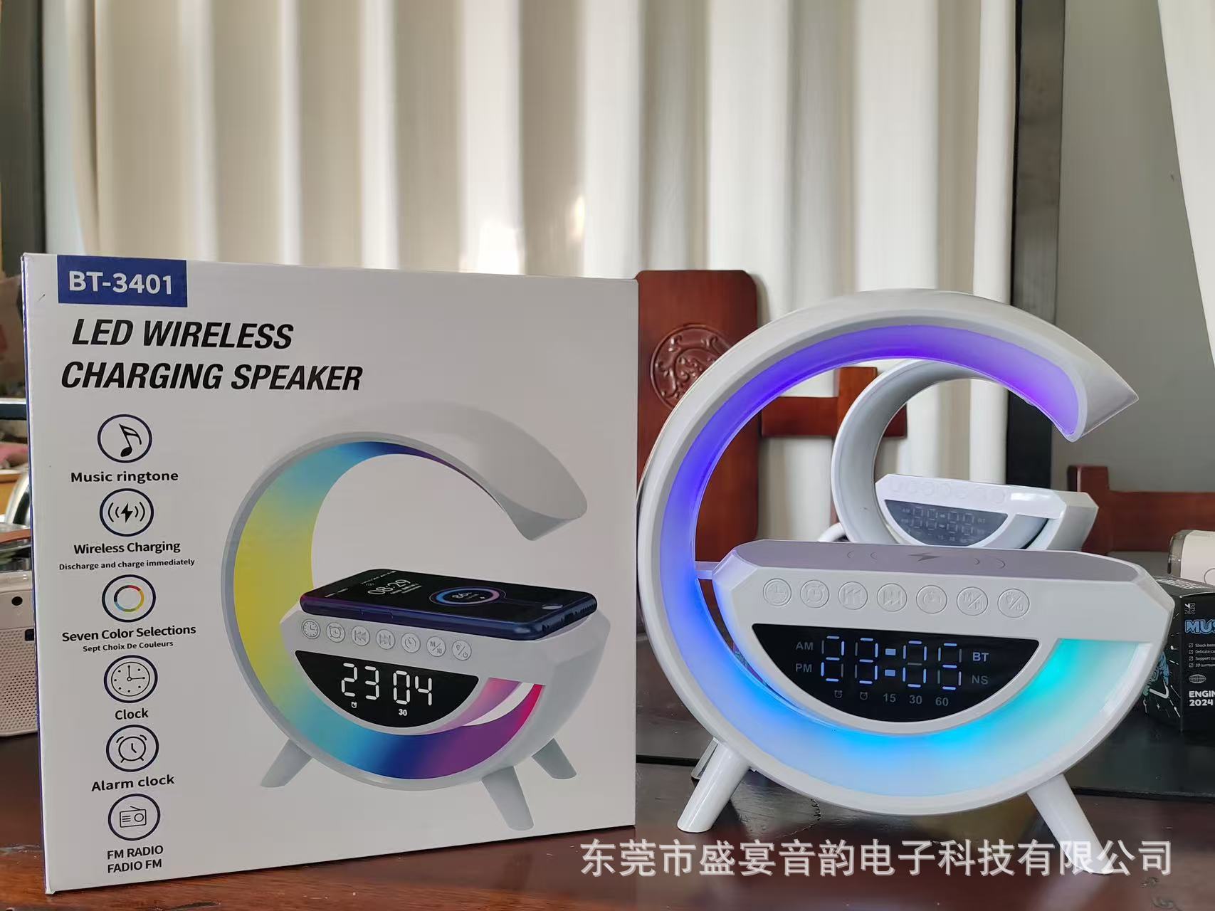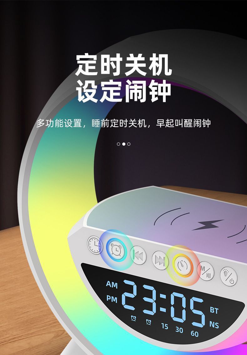 국경을 넘는 인기상품 G 블루투스 스피커 3401 다채로운 조명 스피커 알람시계 음악 데스크탑 다기능 무선충전 USB