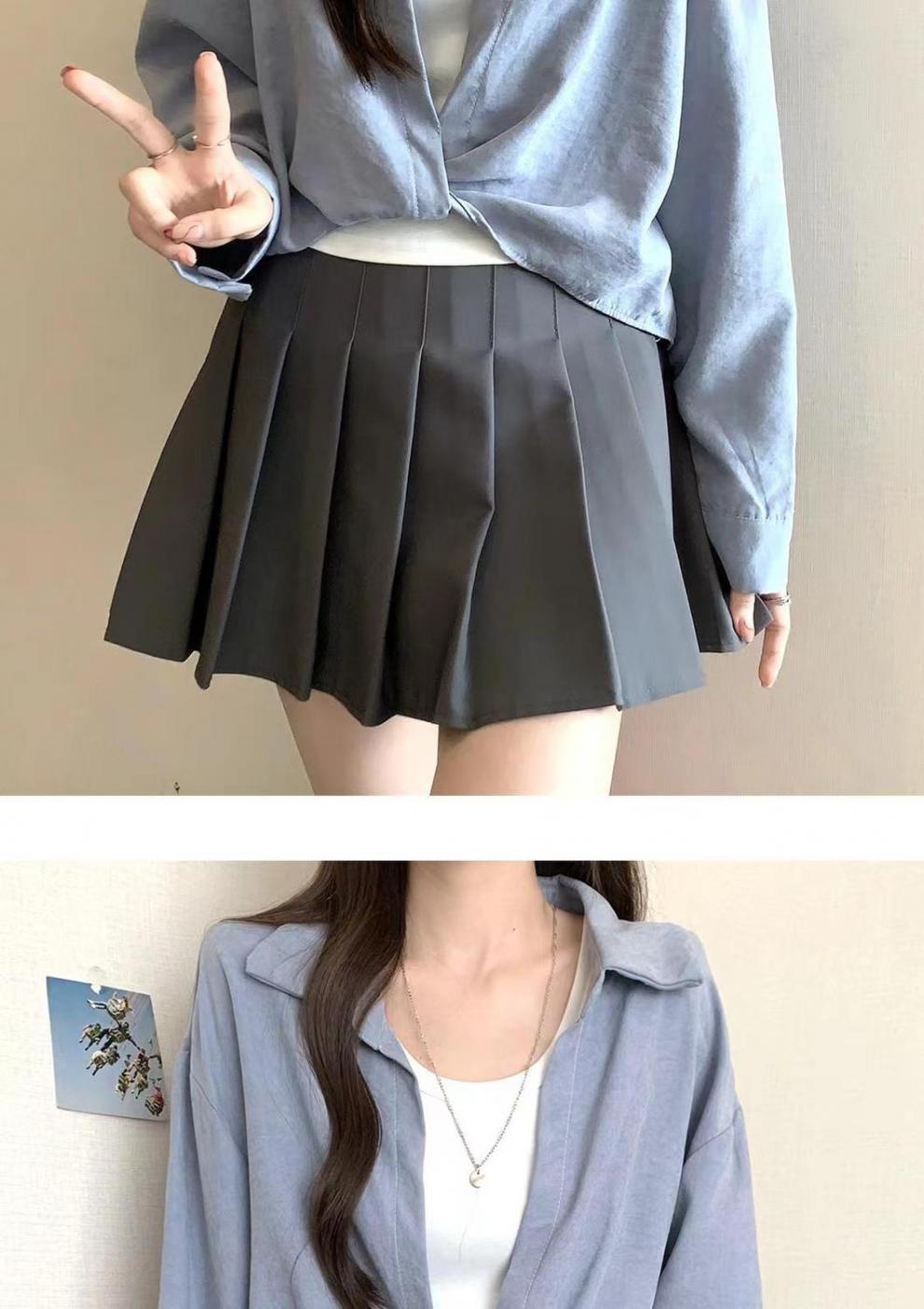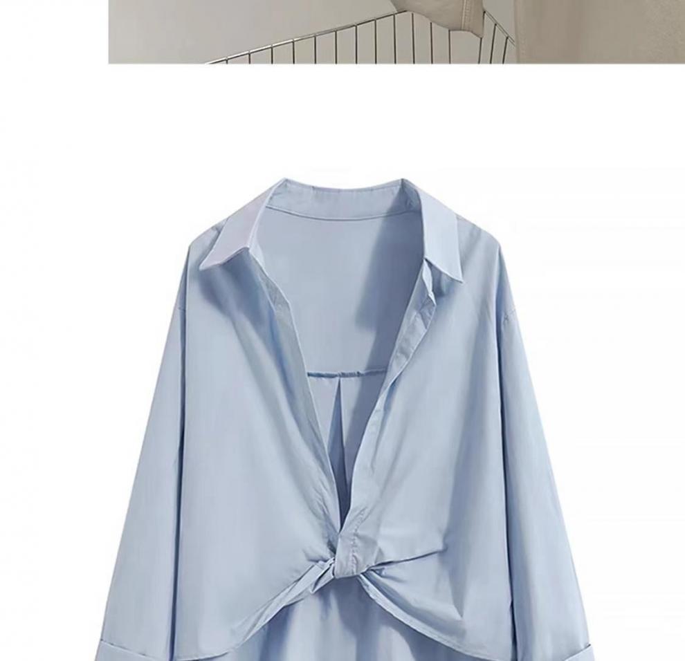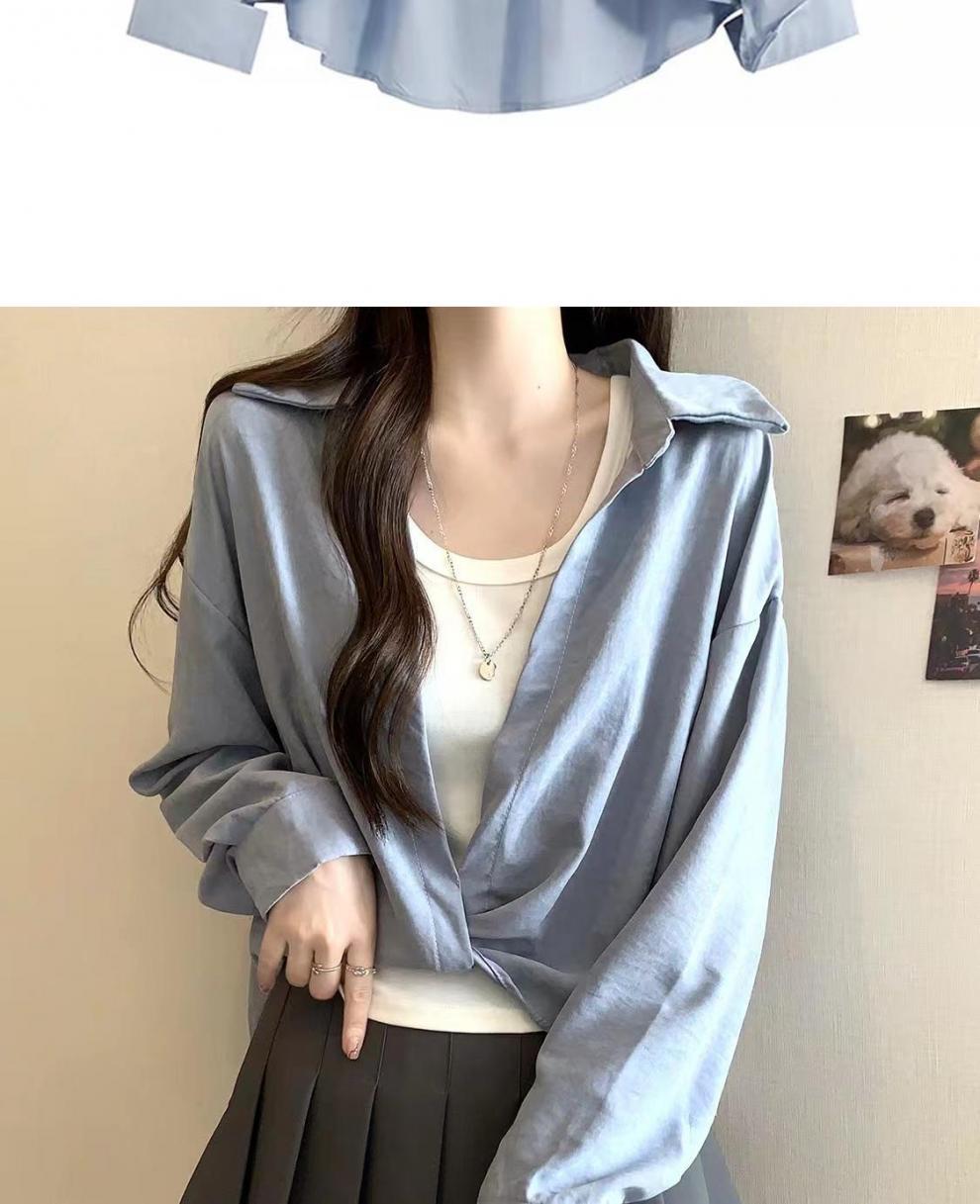 가을 새로운 적층 내부 프랑스 디자인 탑 블루 코튼 셔츠 여성용 틈새 셔츠스토어 가기