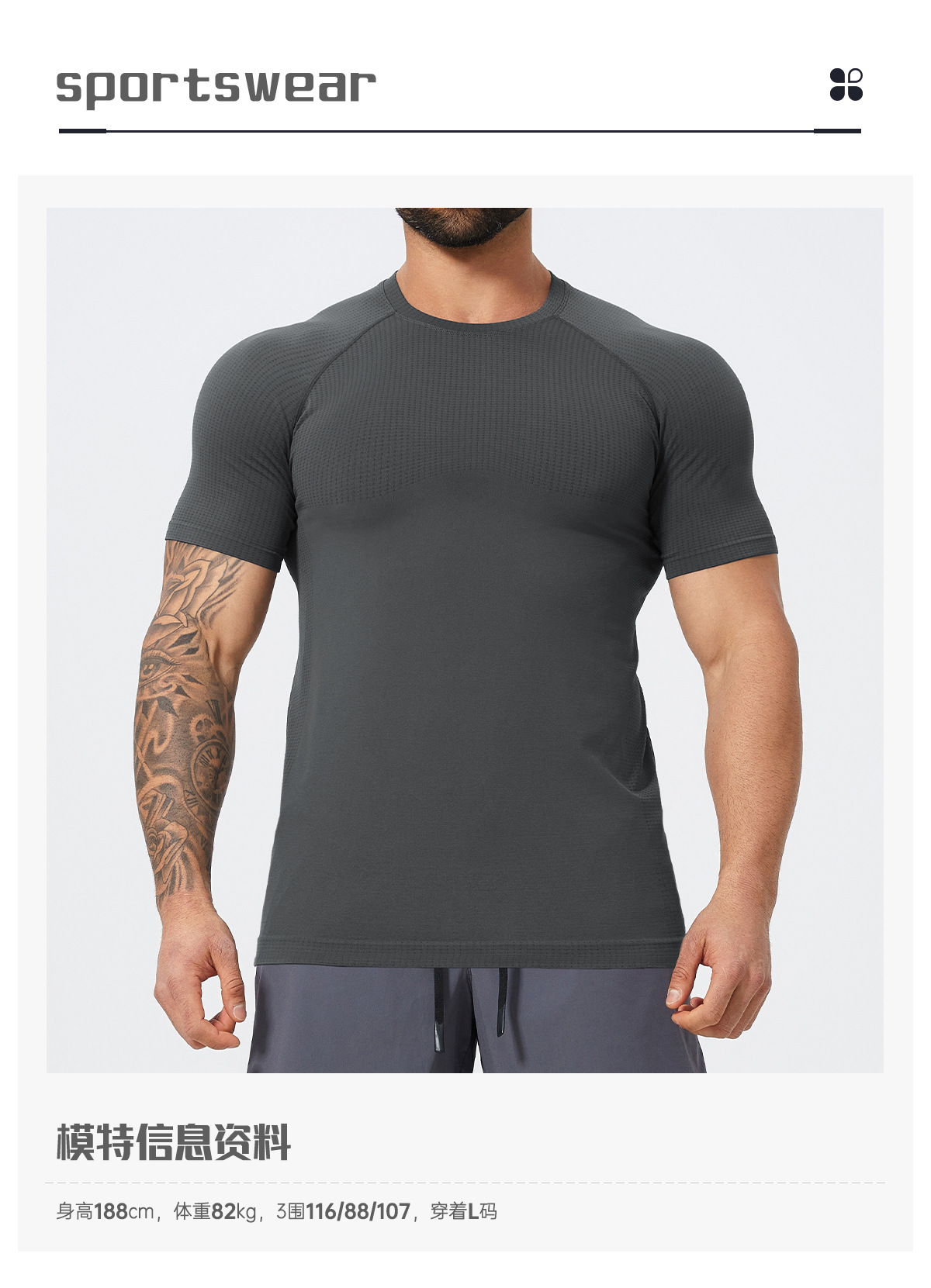 국경 간 봄, 여름 남성 스포츠 피트니스 근육 슬림 반팔 훈련 야외 농구 러닝 원활한 티셔츠 1058