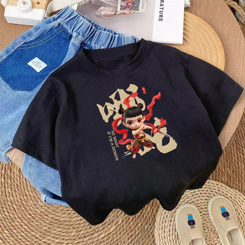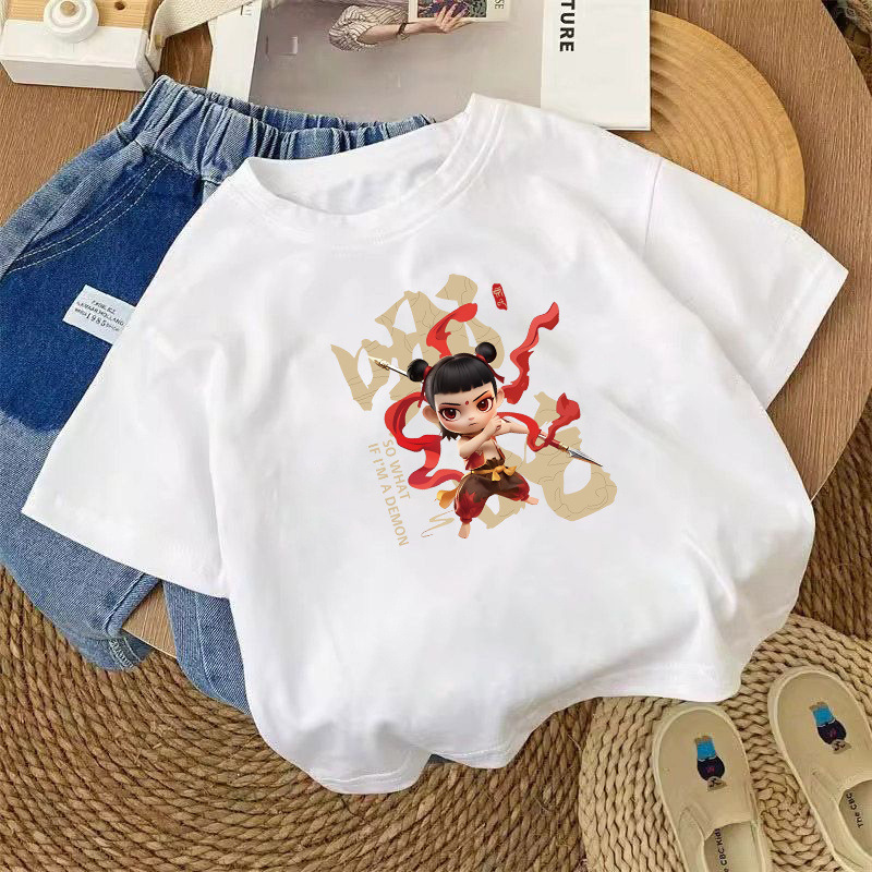 100 면 소년과 소녀 반팔 인쇄 어린이 티셔츠 만화 새로운 어린이 올 매치 아웃로 탑 트렌디 T스토어 가기