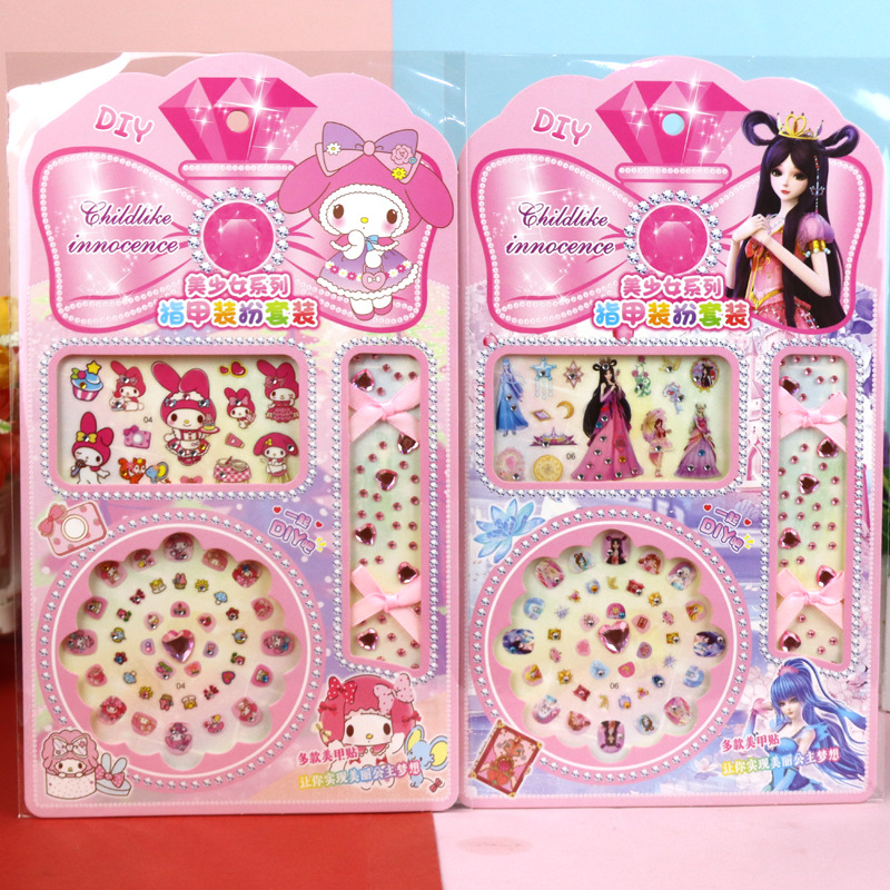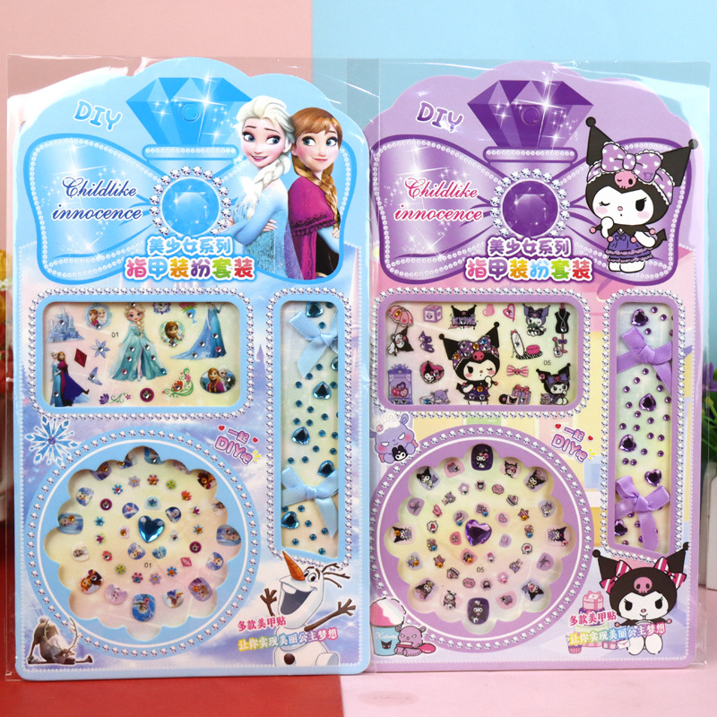 산리오 Culomi 스티커 어린이 만화 다이아몬드 네일 목걸이 팔찌 보석 크리스탈 네일 스티커 세트
