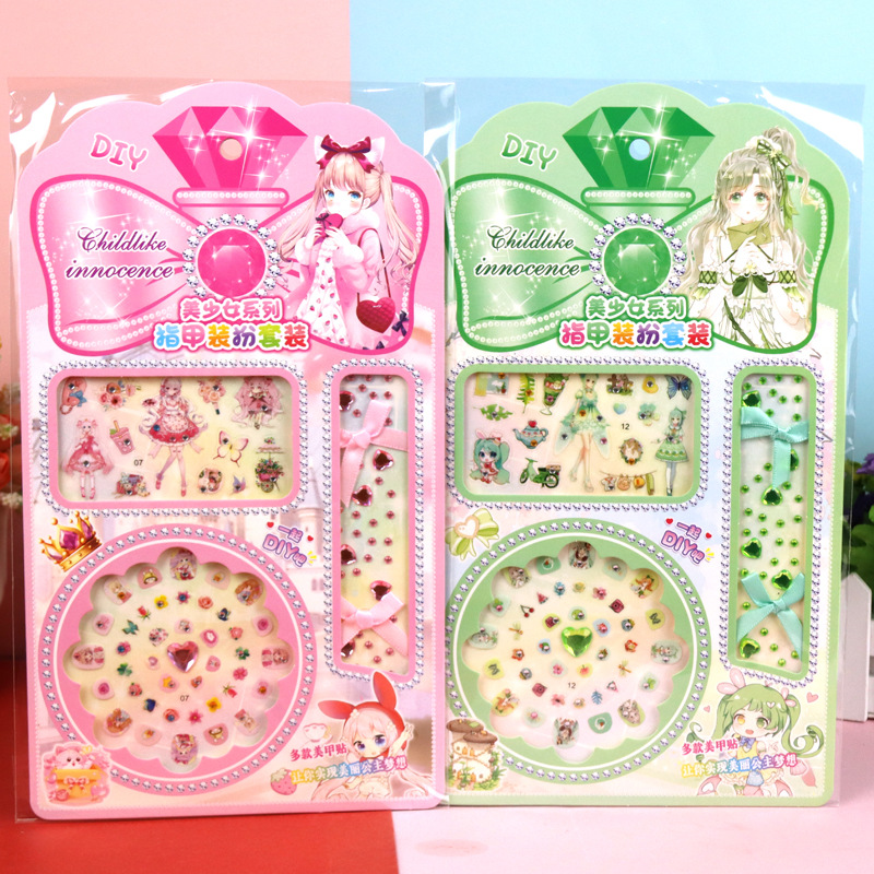 산리오 Culomi 스티커 어린이 만화 다이아몬드 네일 목걸이 팔찌 보석 크리스탈 네일 스티커 세트스토어 가기