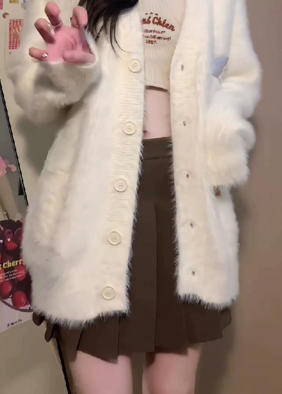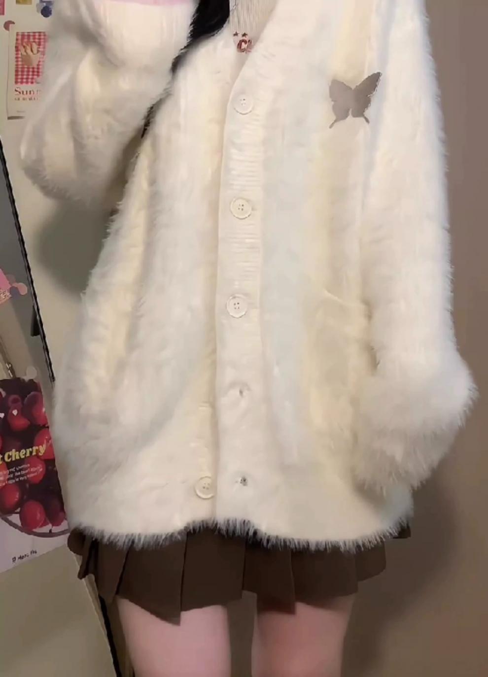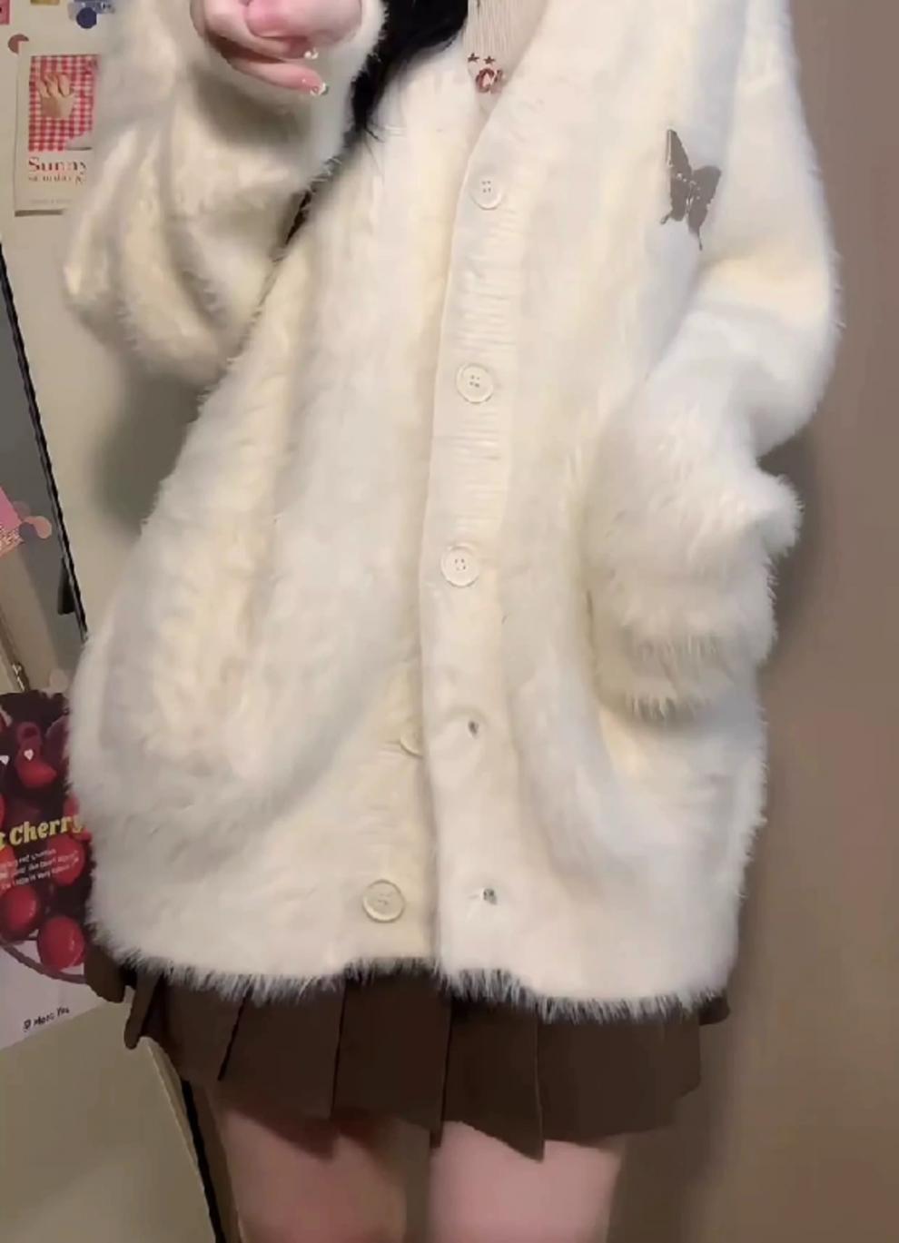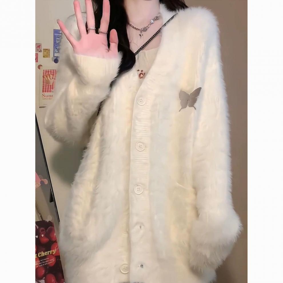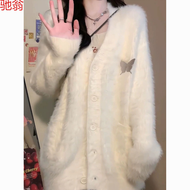 A6C 소프트 왁스 칼리지 스타일 두꺼운 밍크 벨벳 스웨터 여성 카디건 2024 가을과 겨울 새로운 느슨한 게으른 니트 스웨터스토어 가기