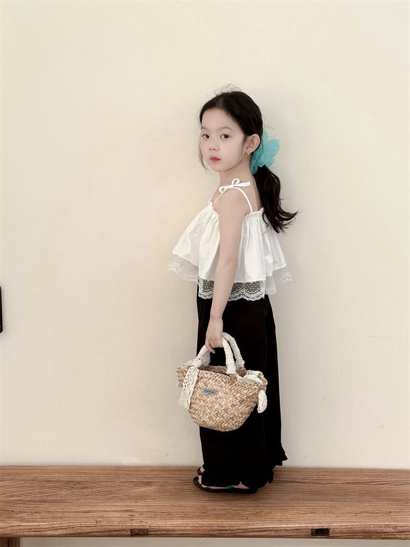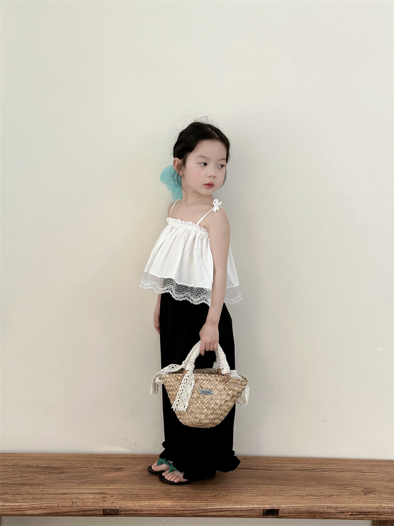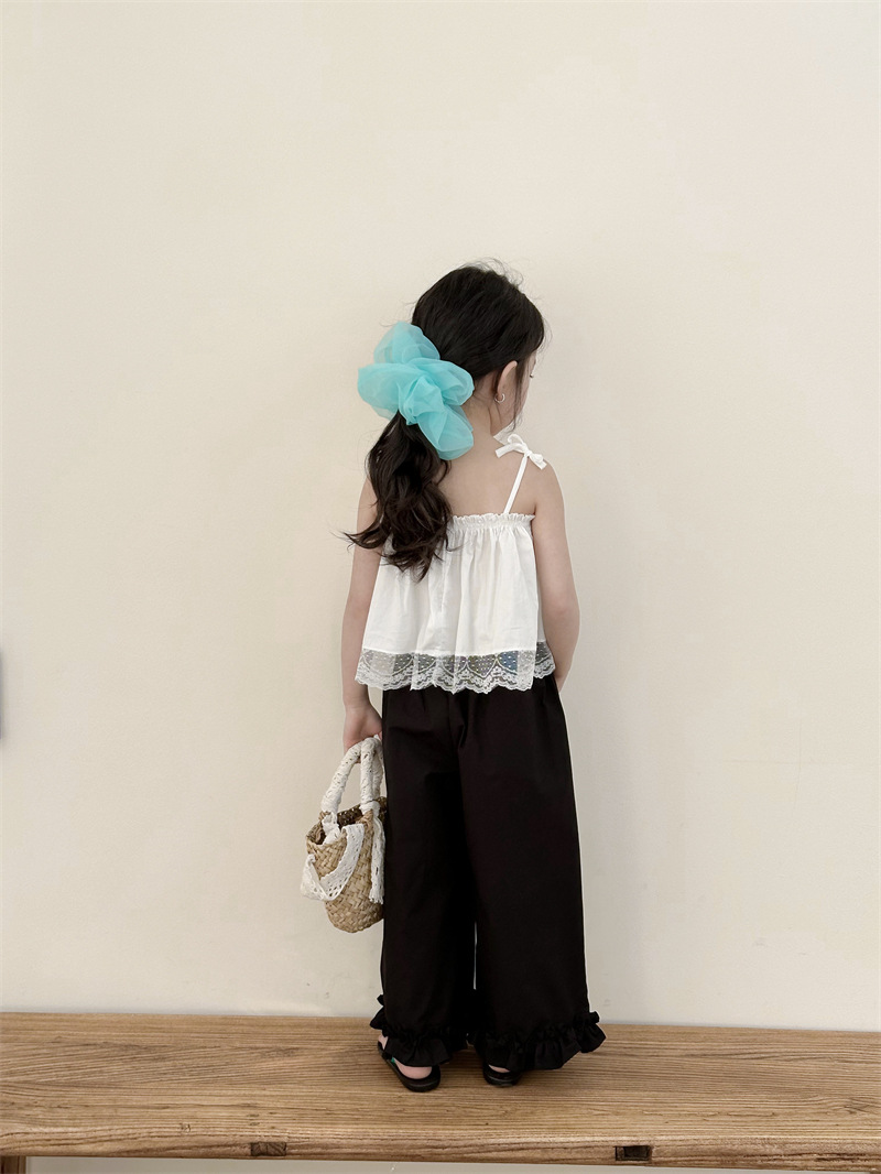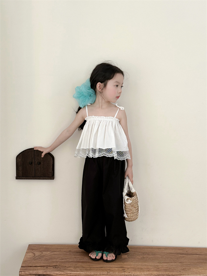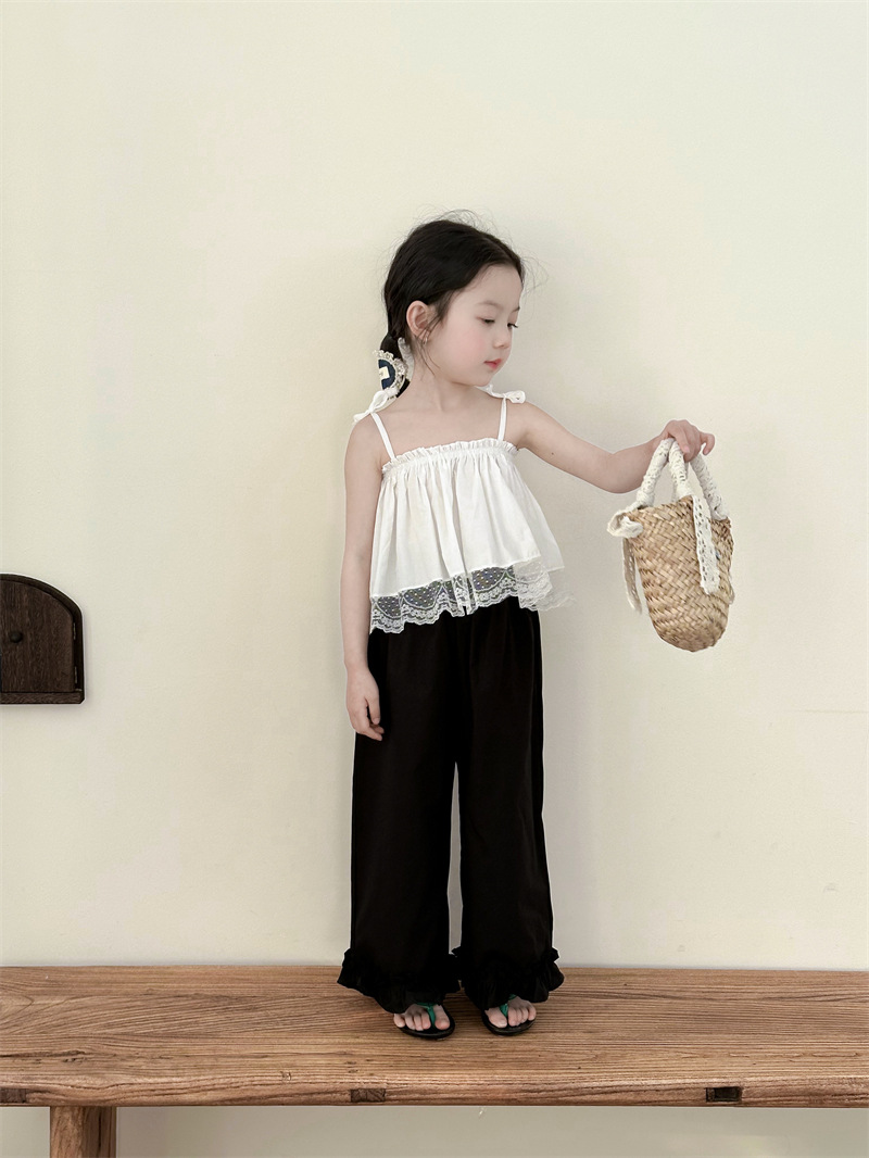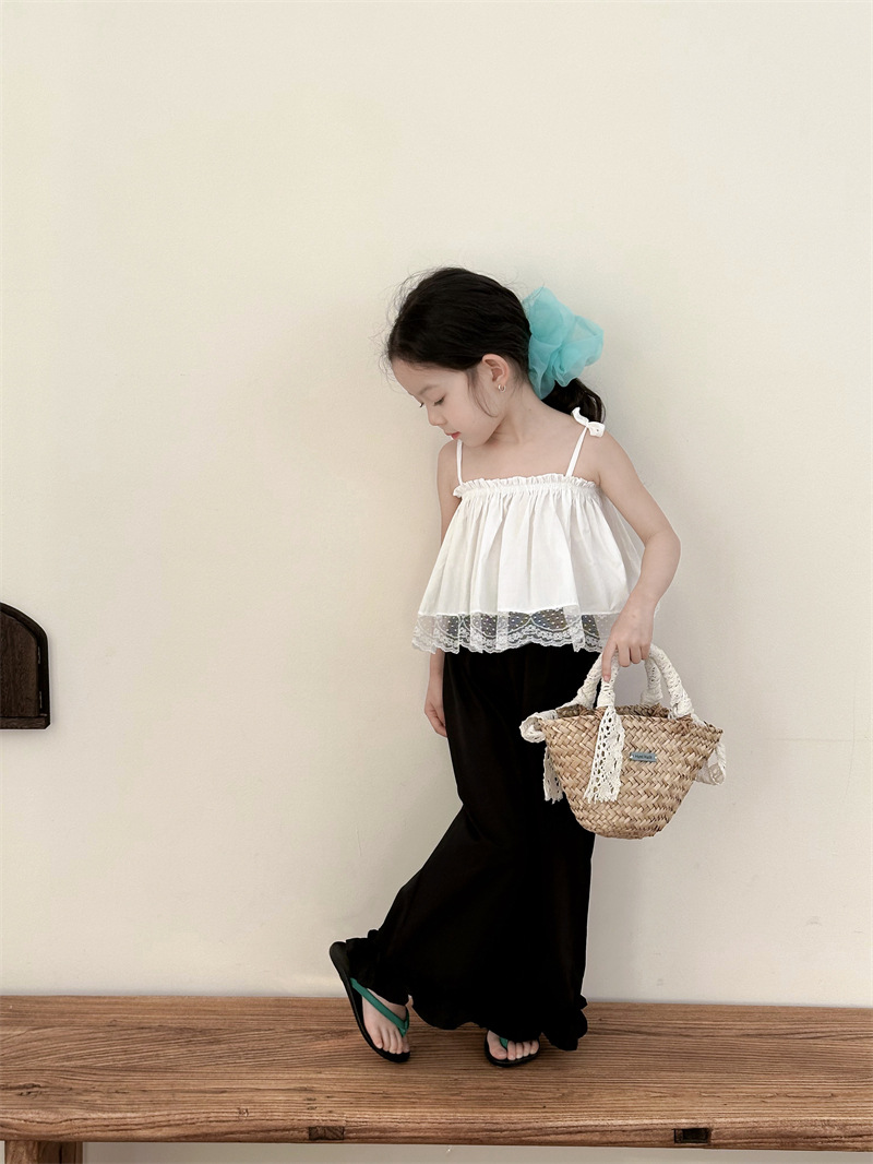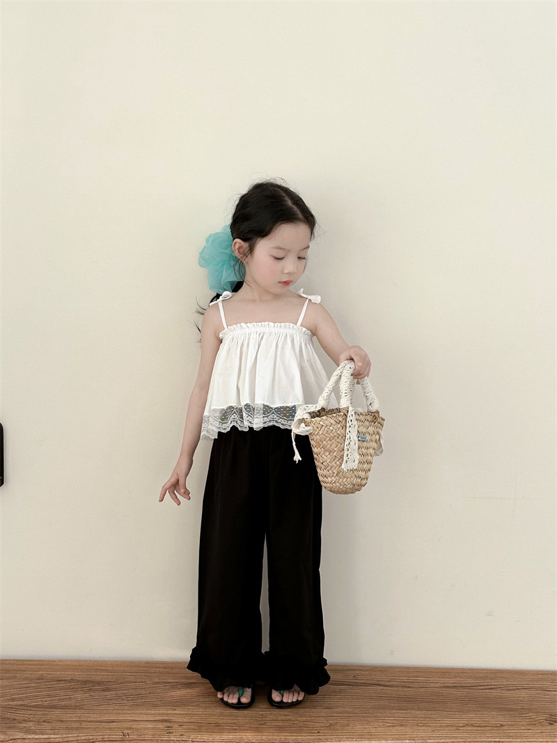 아동복 소녀 레이스 스티칭 스트랩 탑베이스 스트랩 어린이 조끼 블랙 러플 팬츠 A538