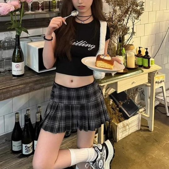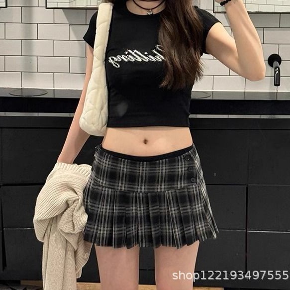 사이드 버클 빈티지 체크 무늬 플리츠 스커트 여성 봄과 가을 새로운 대학 핫 소녀 아메리칸 체크 무늬 스커트 스커트스토어 가기