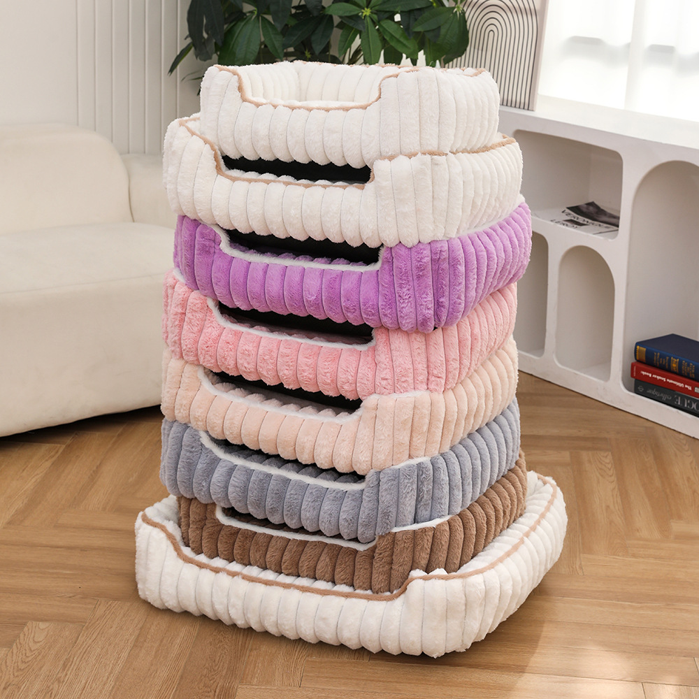 새로운 두꺼운 스트레이트 스퀘어 네스트 래빗 봉제 부드러운 편안한 애완 동물 침대 깊은 수면 고양이 사육장 사계절 개 사육장