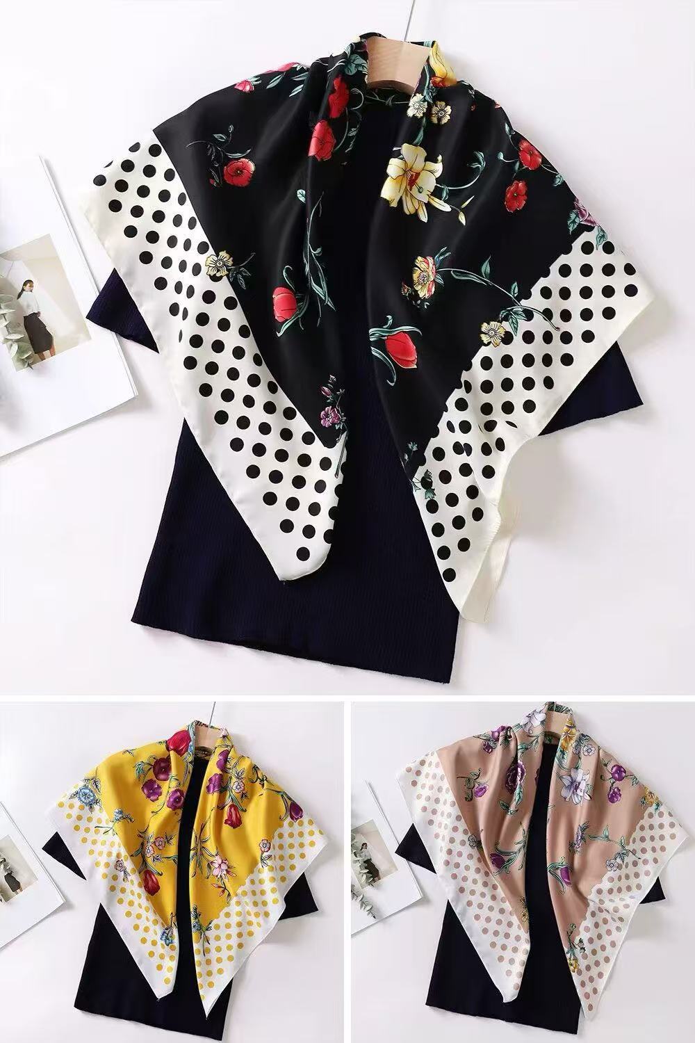 90cm 큰 사각형 스카프 복고풍 외국 스타일의 기질 조커 스카프 봄과 여름 가벼운 통기성 선 스크린 목도리 스카프 도매