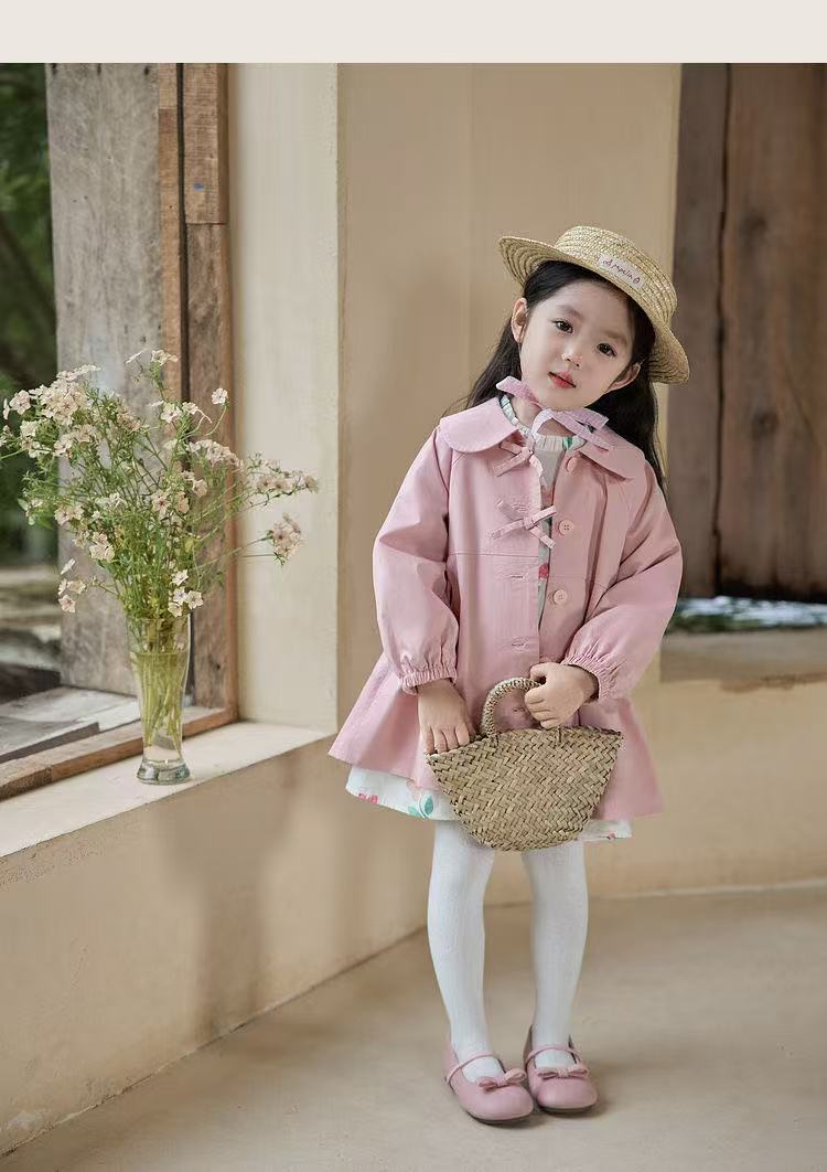 소녀 2025 년 봄 가을 어린이 코트 아기의 새로운 인형 칼라 어린이 한국식 중간 외국식 공주
