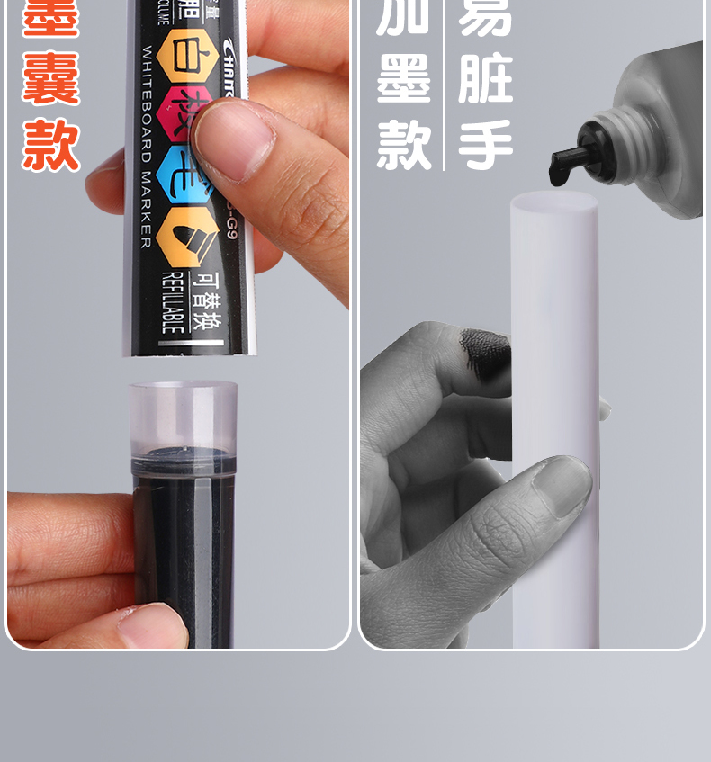 화이트 보드 펜은 잉크 Sac 지울 수있는 어린이를 잉크 교사 추가 물 기반 칠판 화이트 클래스 펜 대용량 빨간색과 검은 색