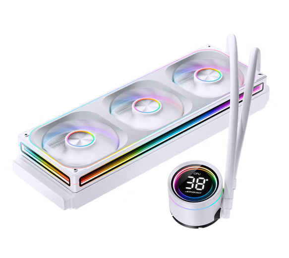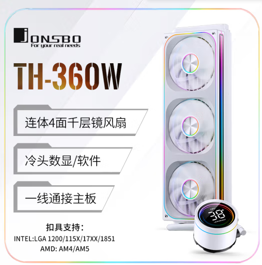 乔思伯(JONSBO)TH-360白色 一体式水冷散热器 (连体4面千层镜风扇/一线通接主板/冷头数显/软件/千层镜光效)