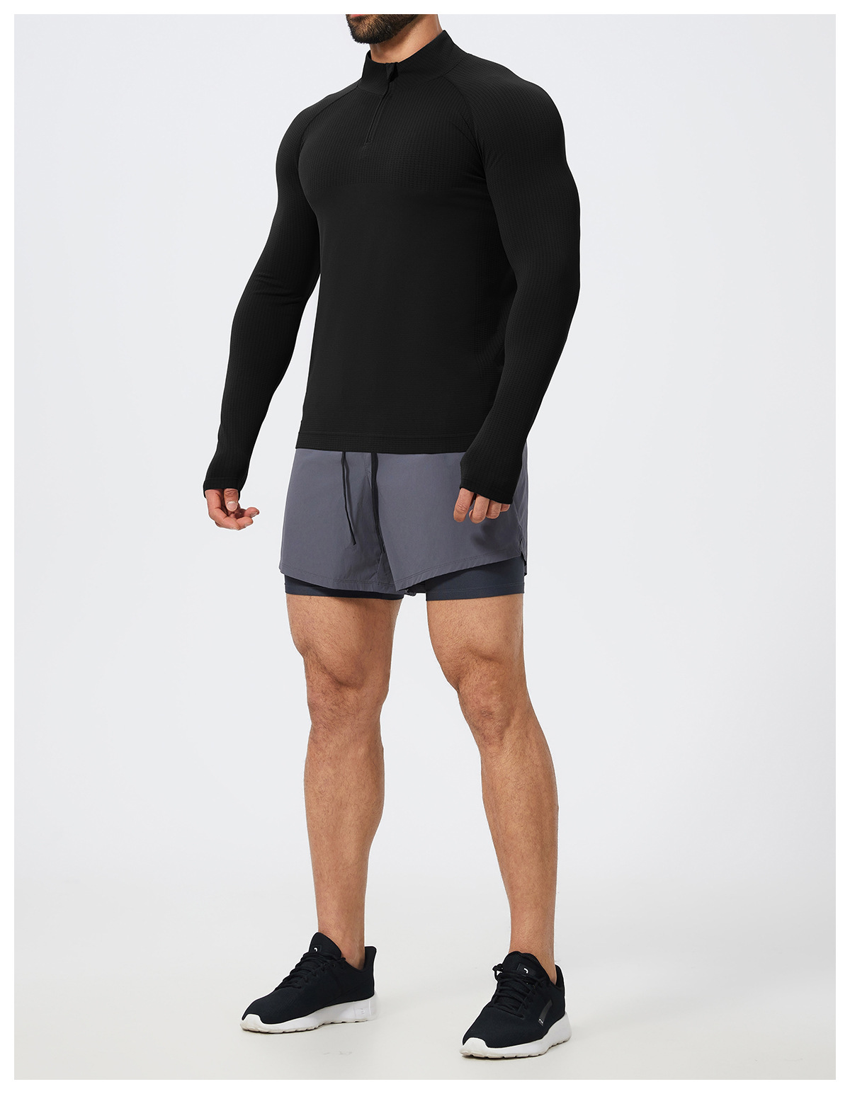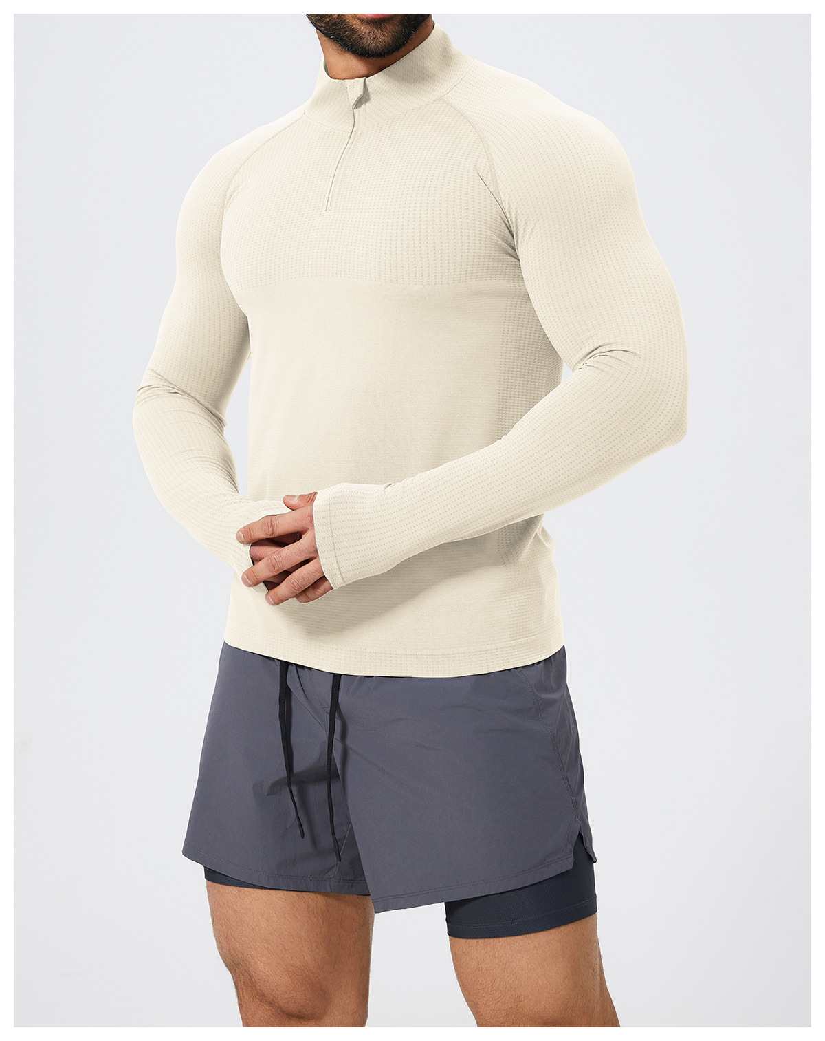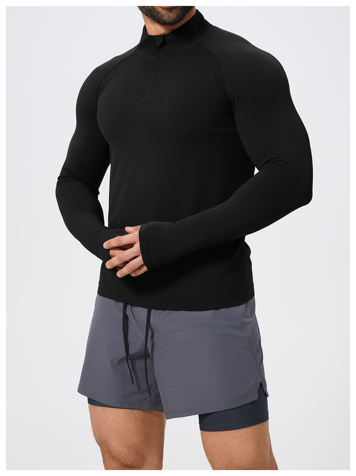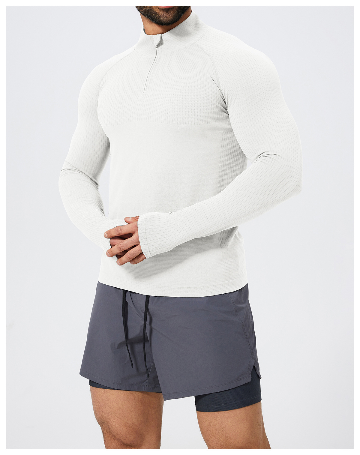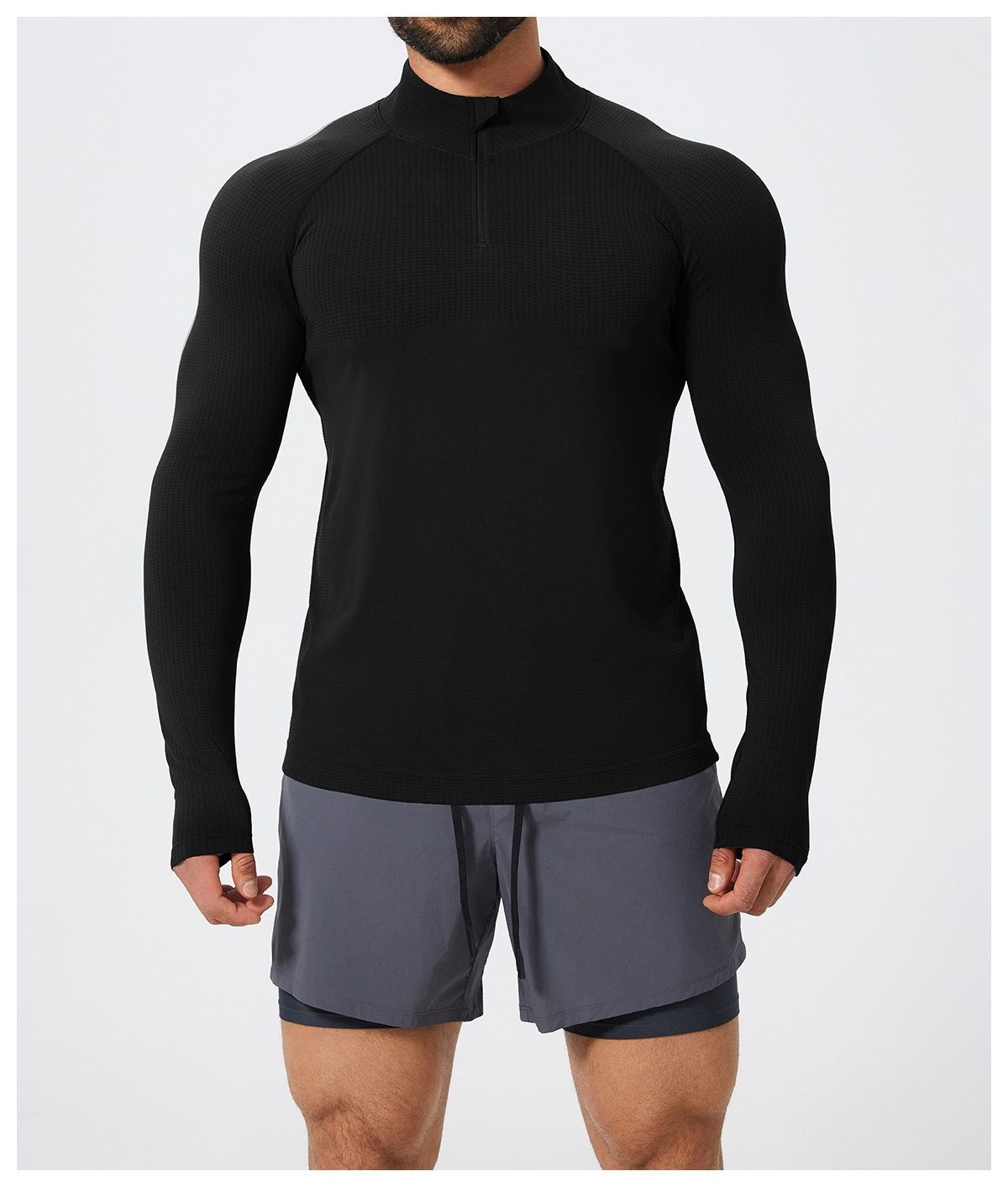남성용 스포츠 피트니스 지퍼 통기성 심리스 긴팔 티셔츠 봄 가을 러닝 축구복 1058