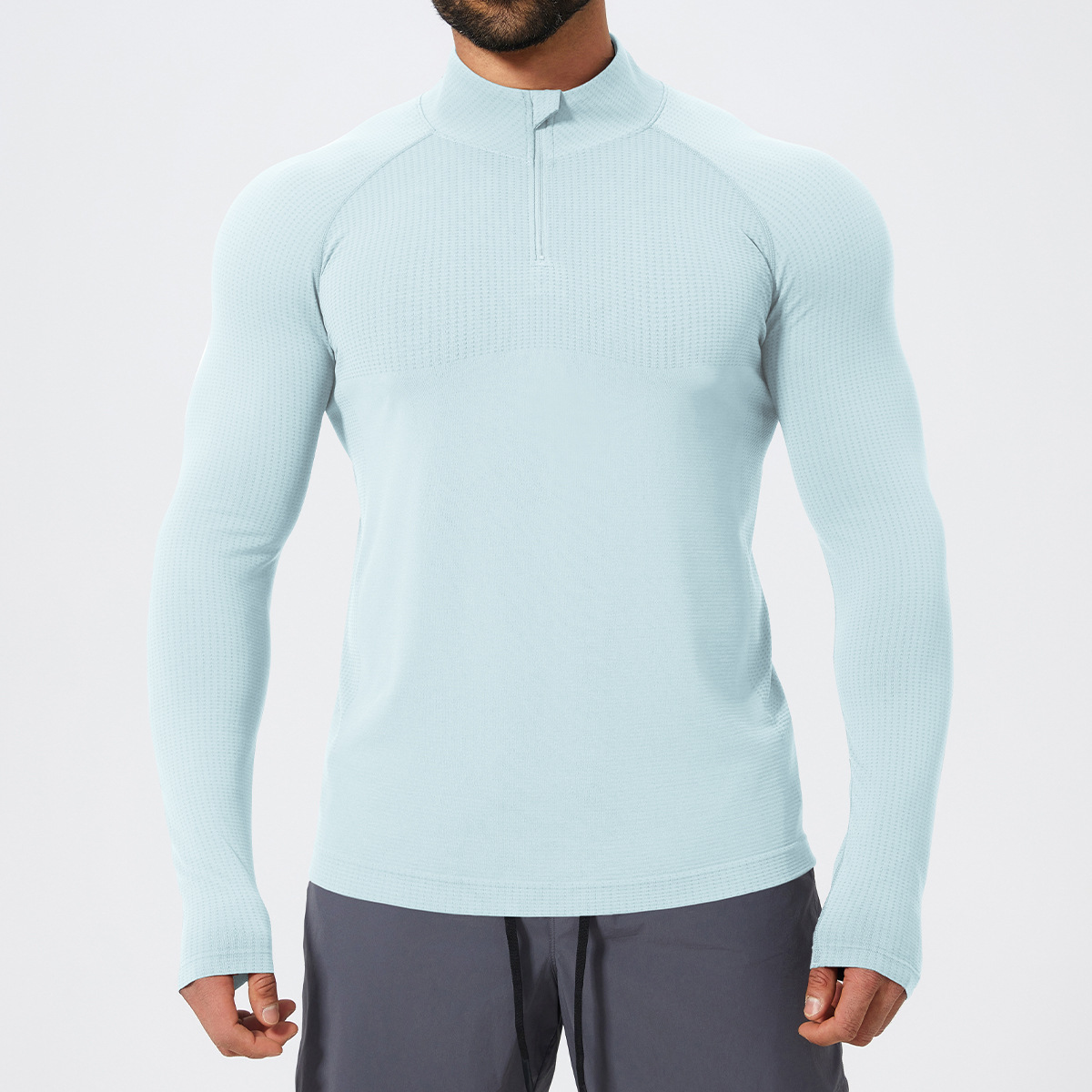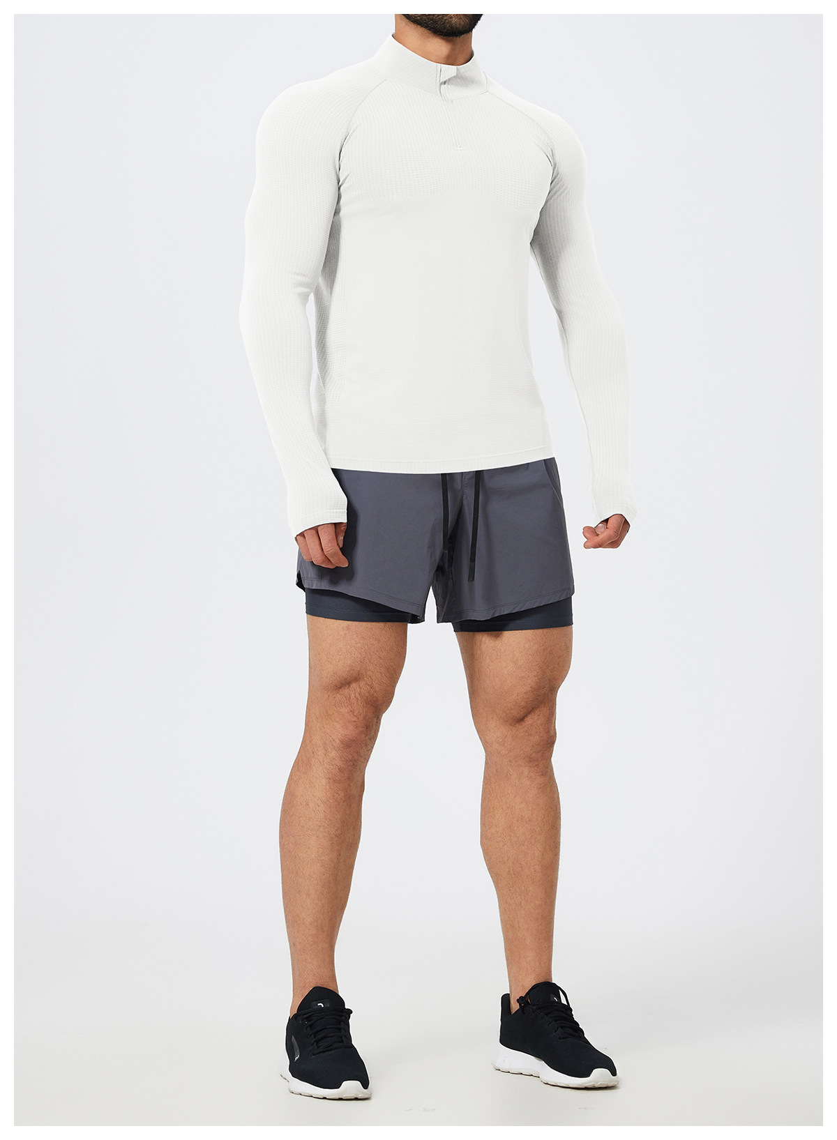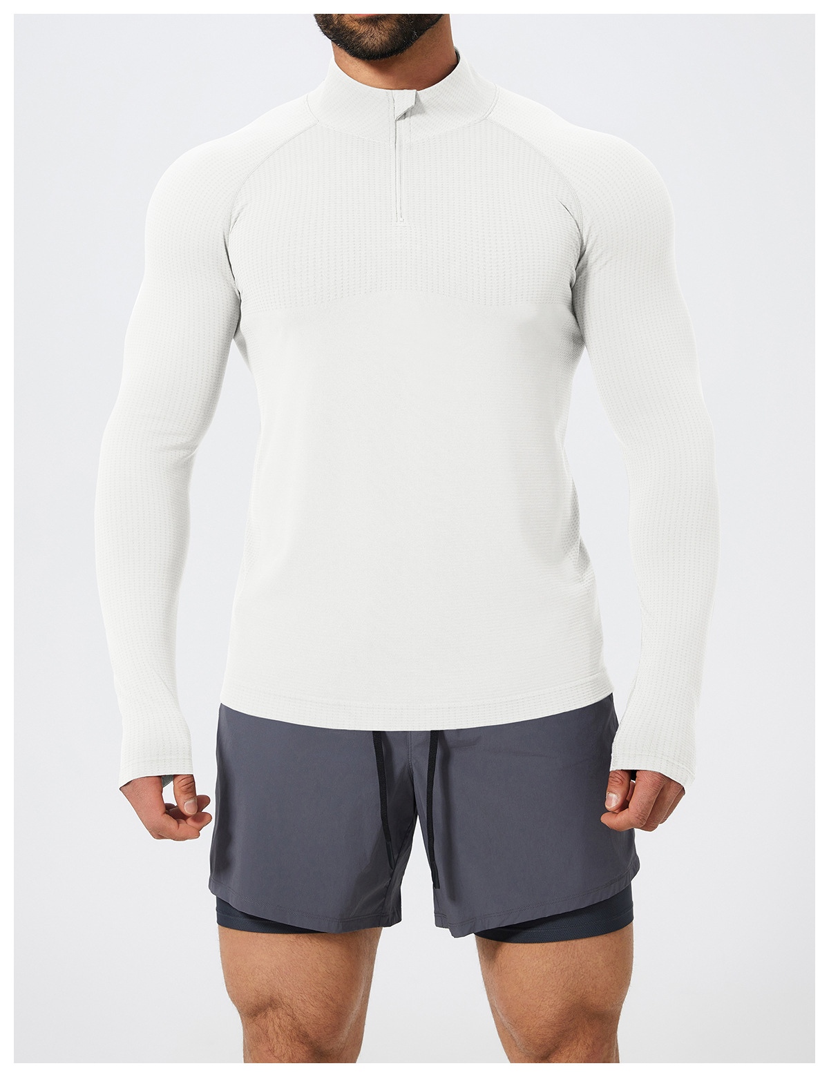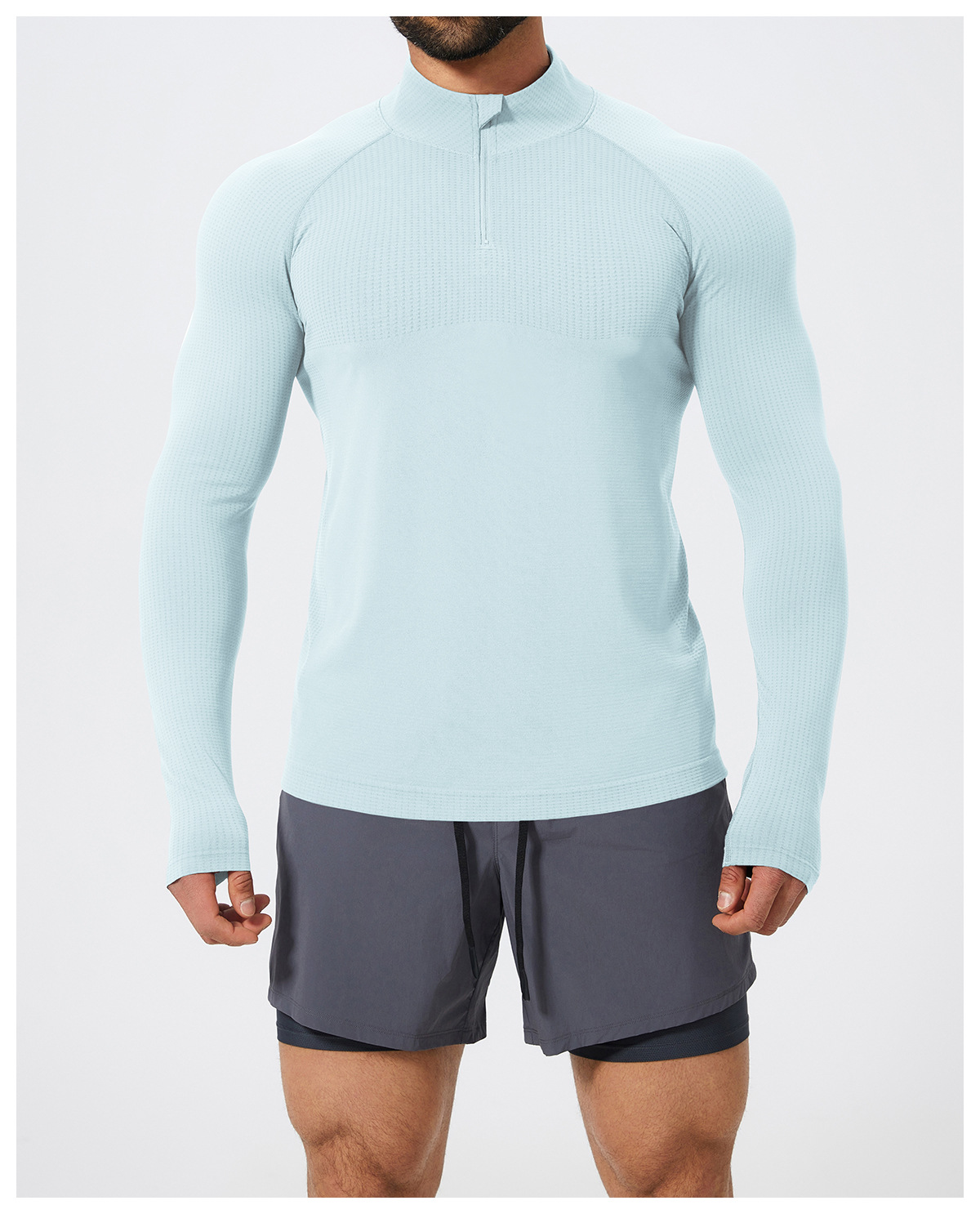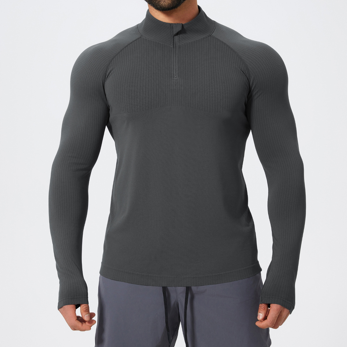 남성용 스포츠 피트니스 지퍼 통기성 심리스 긴팔 티셔츠 봄 가을 러닝 축구복 1058