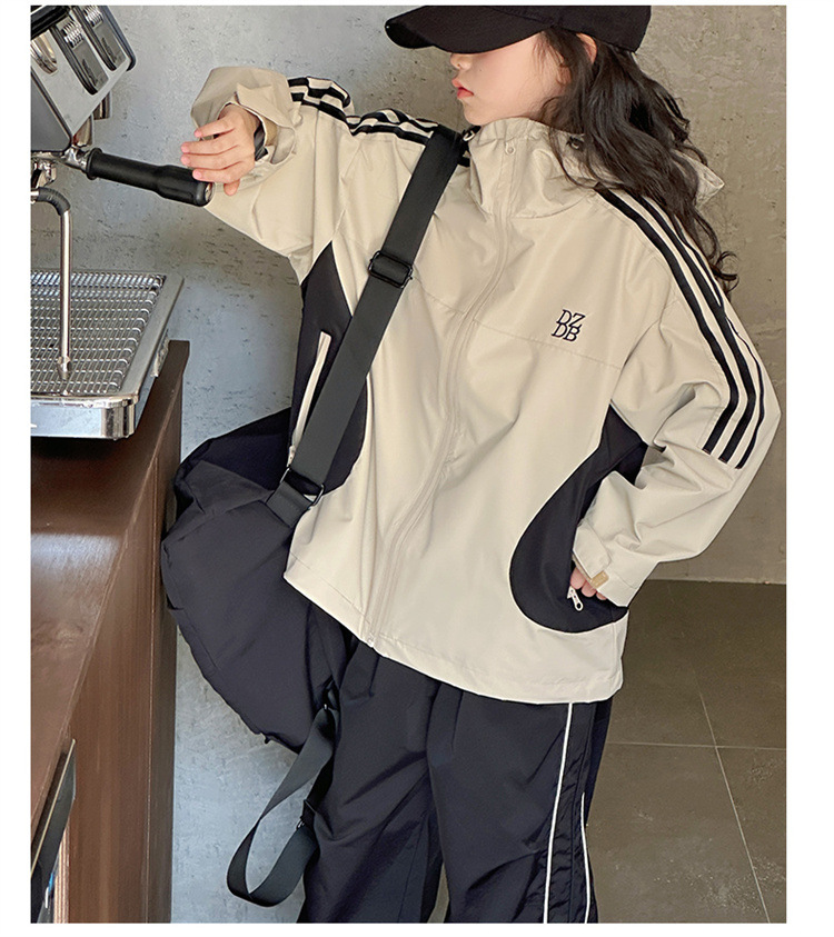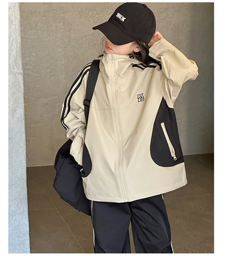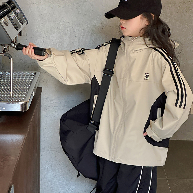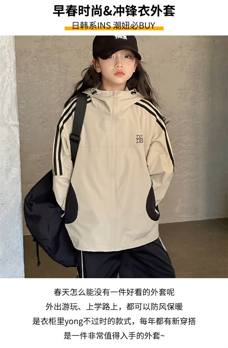 소녀 러쉬 자켓 2025 봄 새로운 스타일 큰 어린이 유행 서양 스타일 캐주얼 후드 윈드 브레이커 재킷 최고 대외 무역