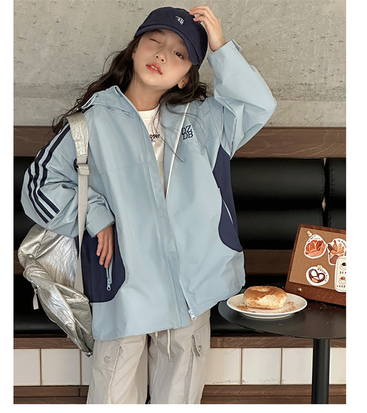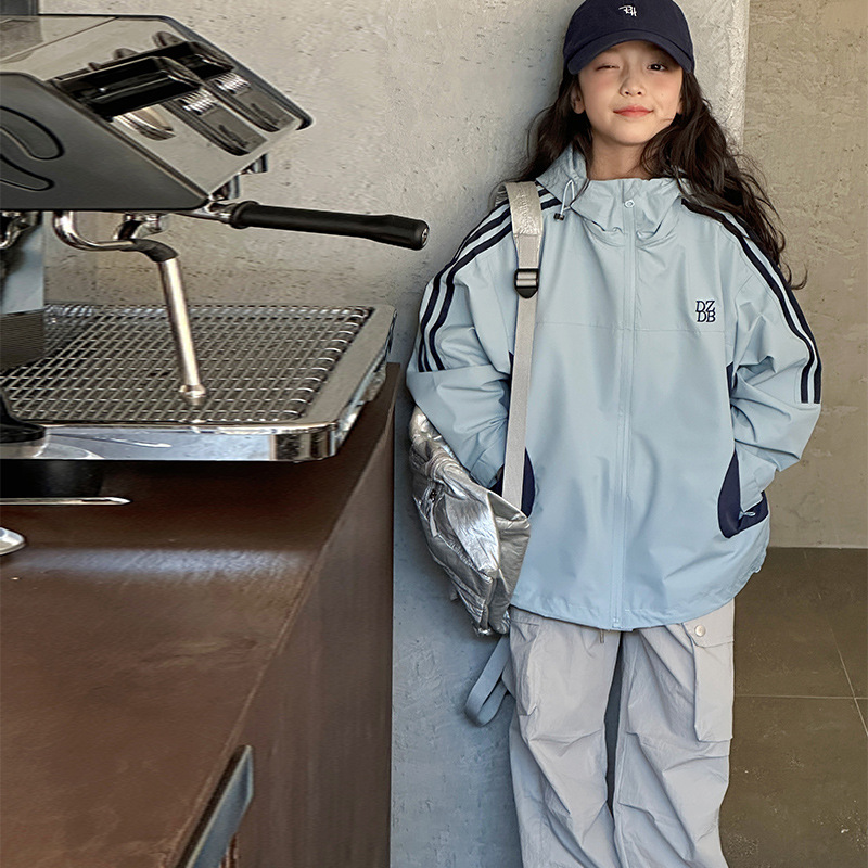 소녀 러쉬 자켓 2025 봄 새로운 스타일 큰 어린이 유행 서양 스타일 캐주얼 후드 윈드 브레이커 재킷 최고 대외 무역스토어 가기