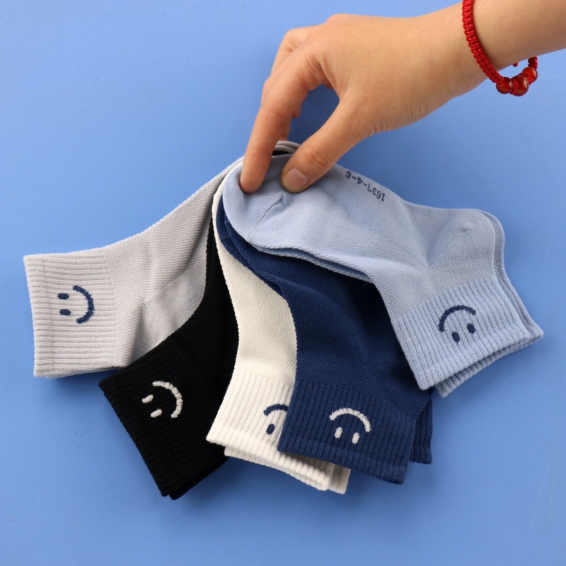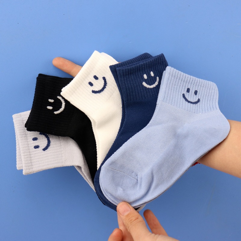 소년 간단한 캐주얼 올 매치 웨스턴 스타일 스마일리 짧은 튜브 여름 얇은 메쉬 땀 흡수 통기성 스포츠 스타일 베이비 양말
