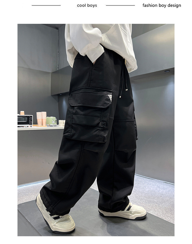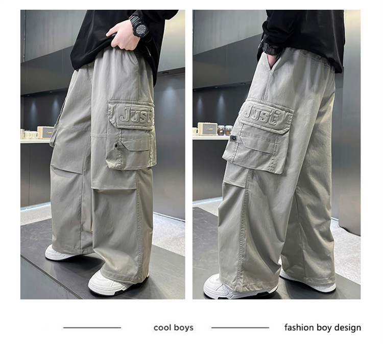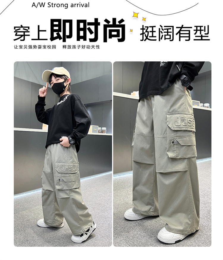 남아용 작업복 2025 봄, 가을 새로운 스타일 아동용 와이드 팬츠, 남아용 멋진 스타일 봄, 가을 스포츠 바지스토어 가기