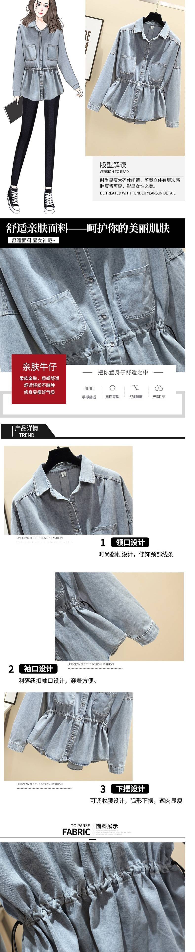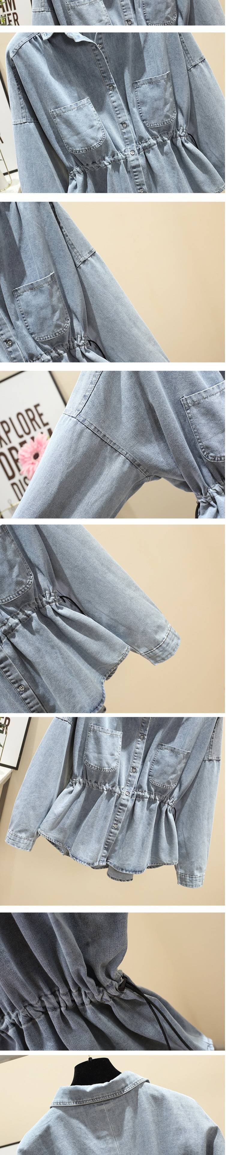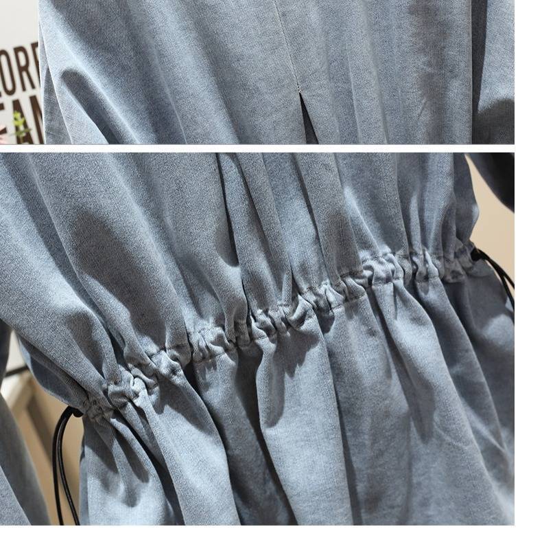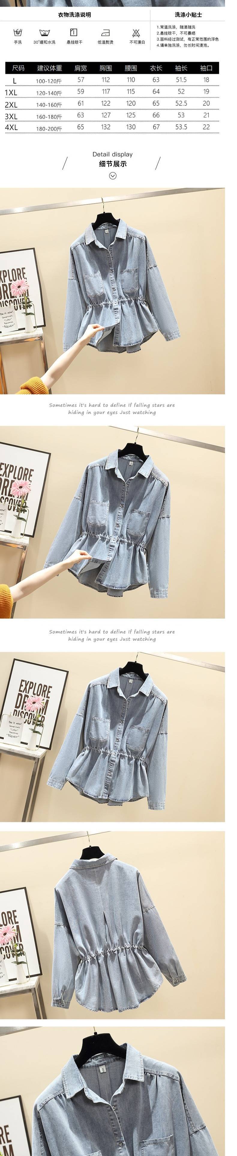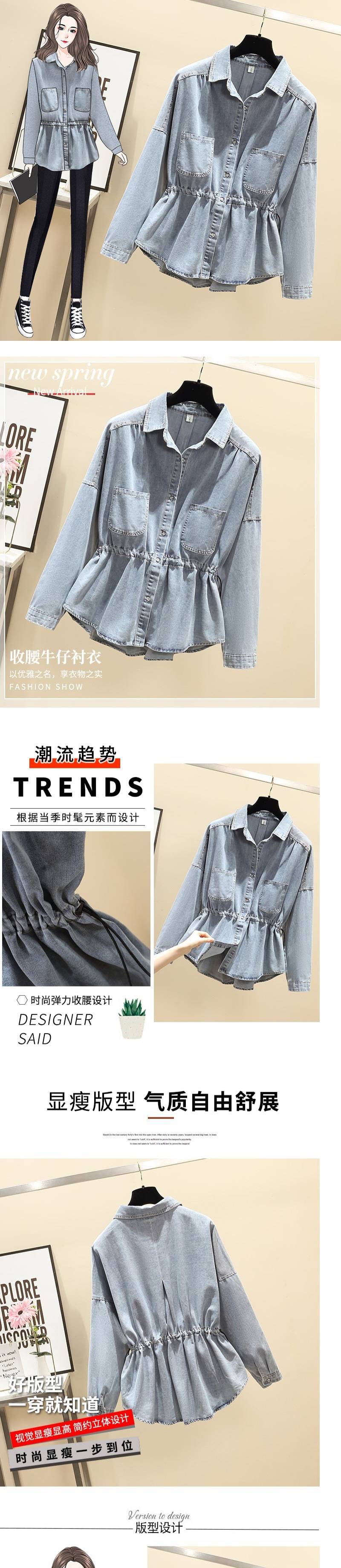 플러스 사이즈 2025 새로운 여성 배꼽 피복 디자인 센스 슬림 허리 데님 셔츠 코트 롱스토어 가기