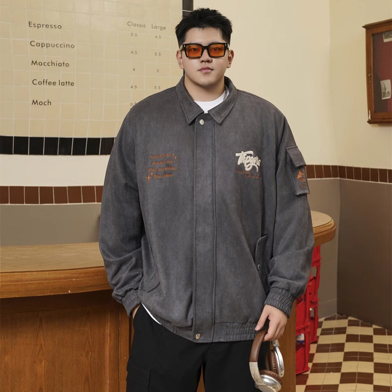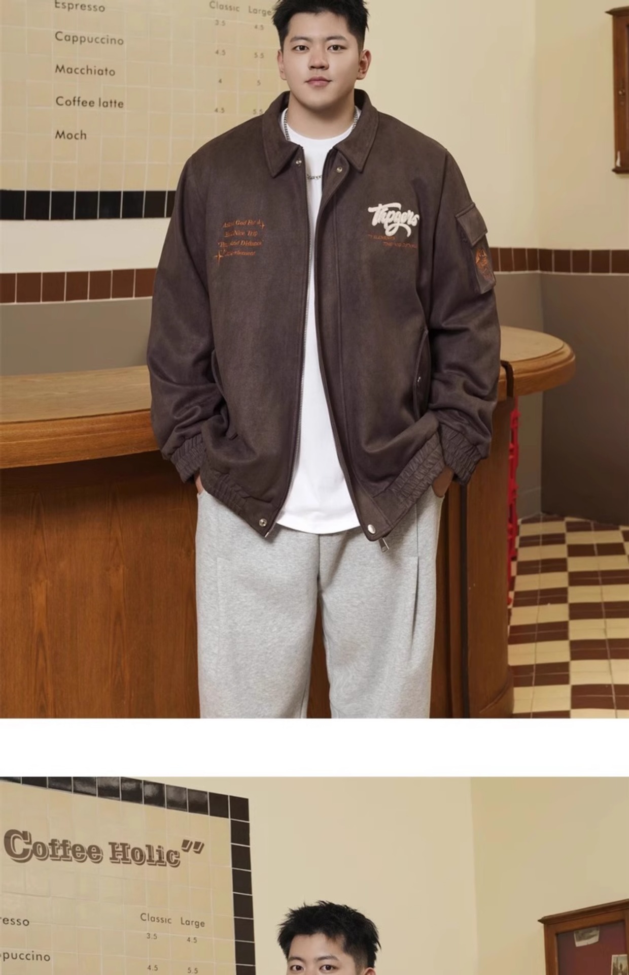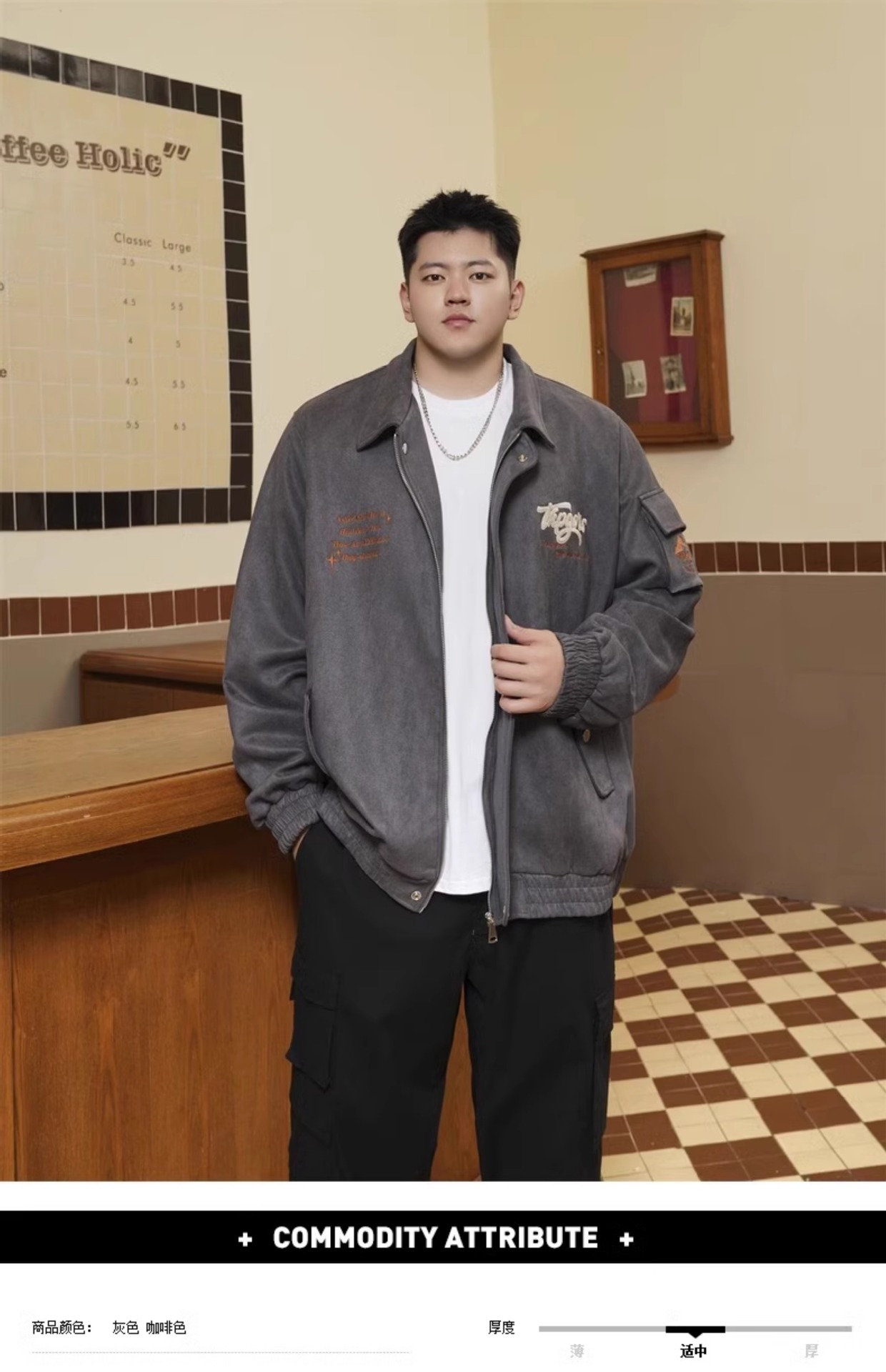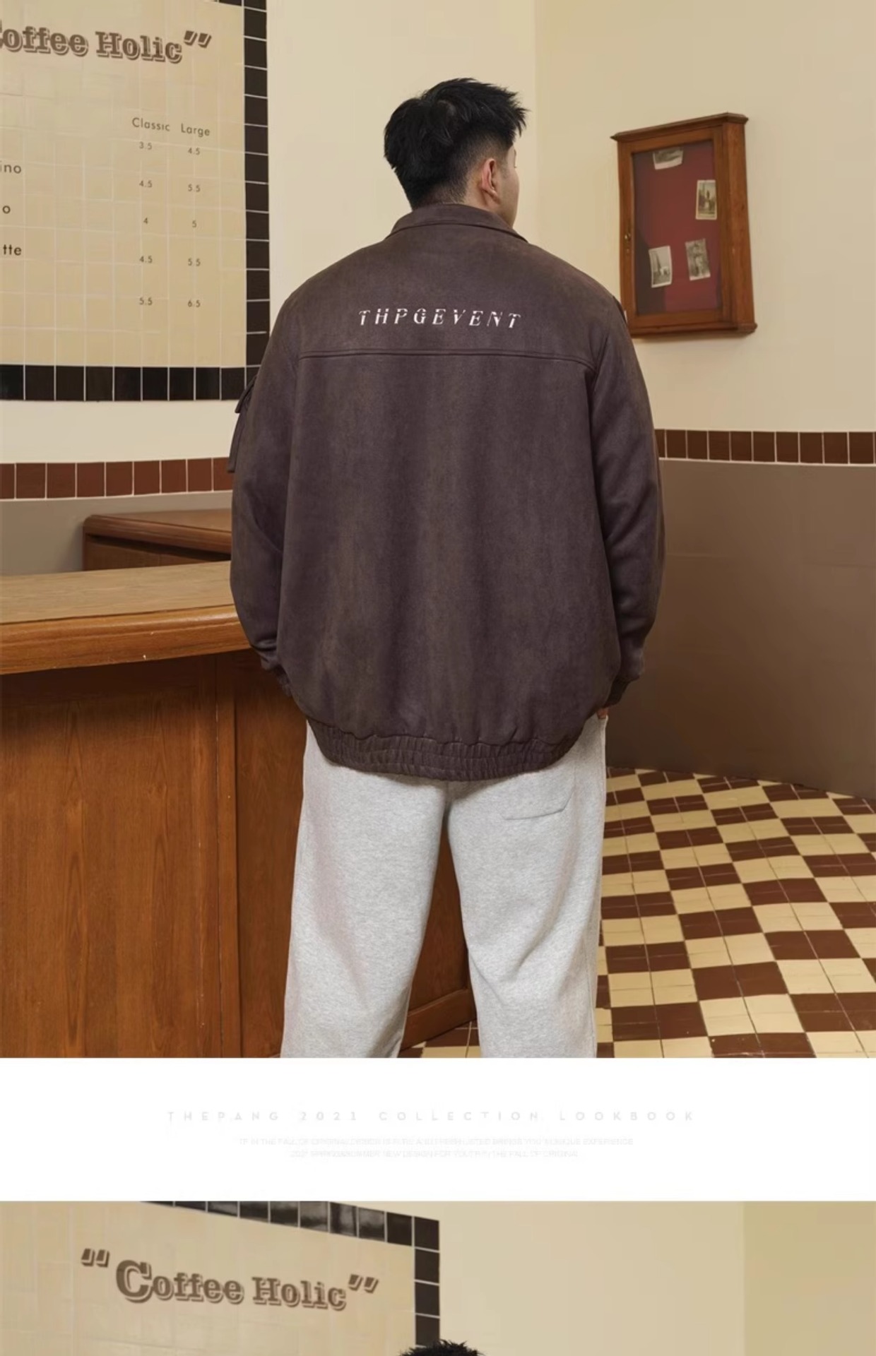 남성용 캐주얼 재킷 유행 브랜드 플러스 사이즈 남성용 스웨이드 옷깃 코트 지방 느슨한 플러스 가을과 겨울용 지방 플러스 사이즈스토어 가기