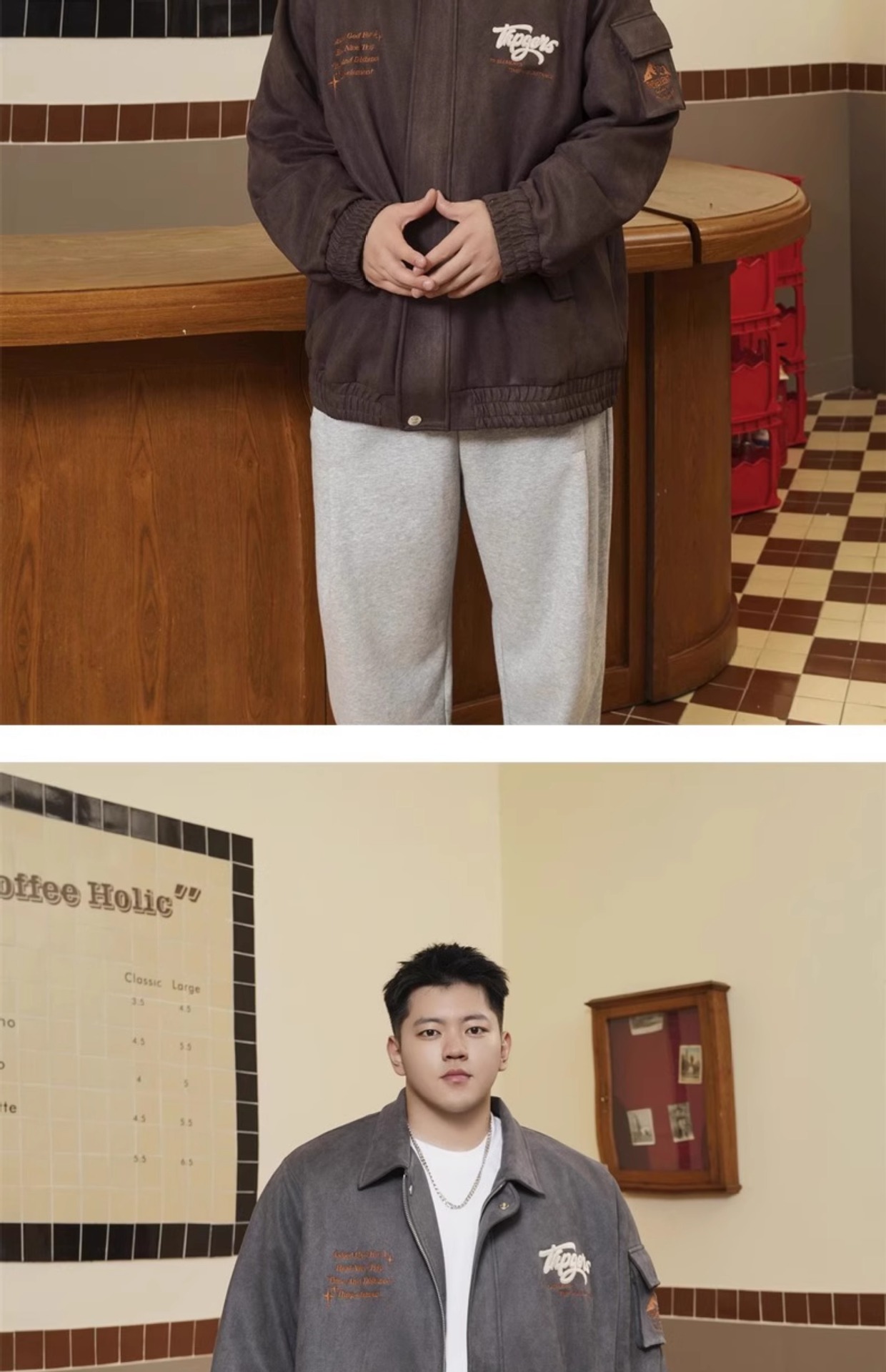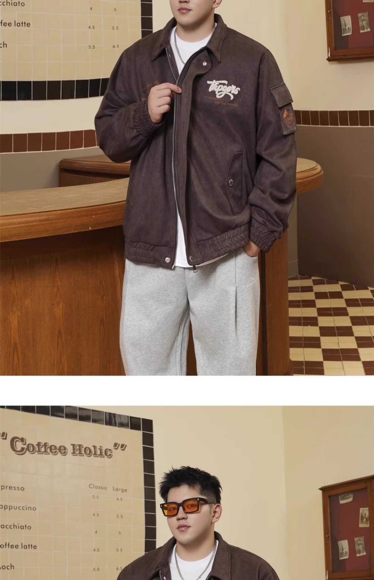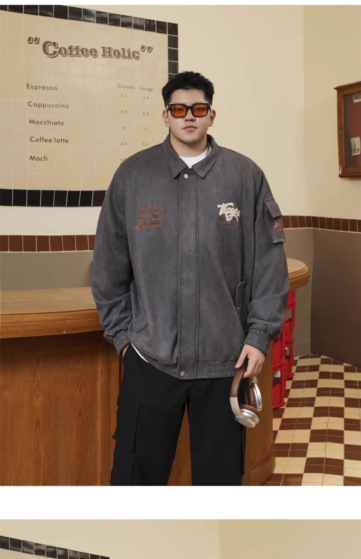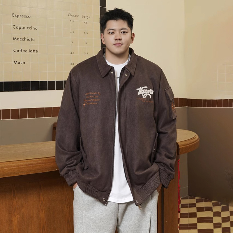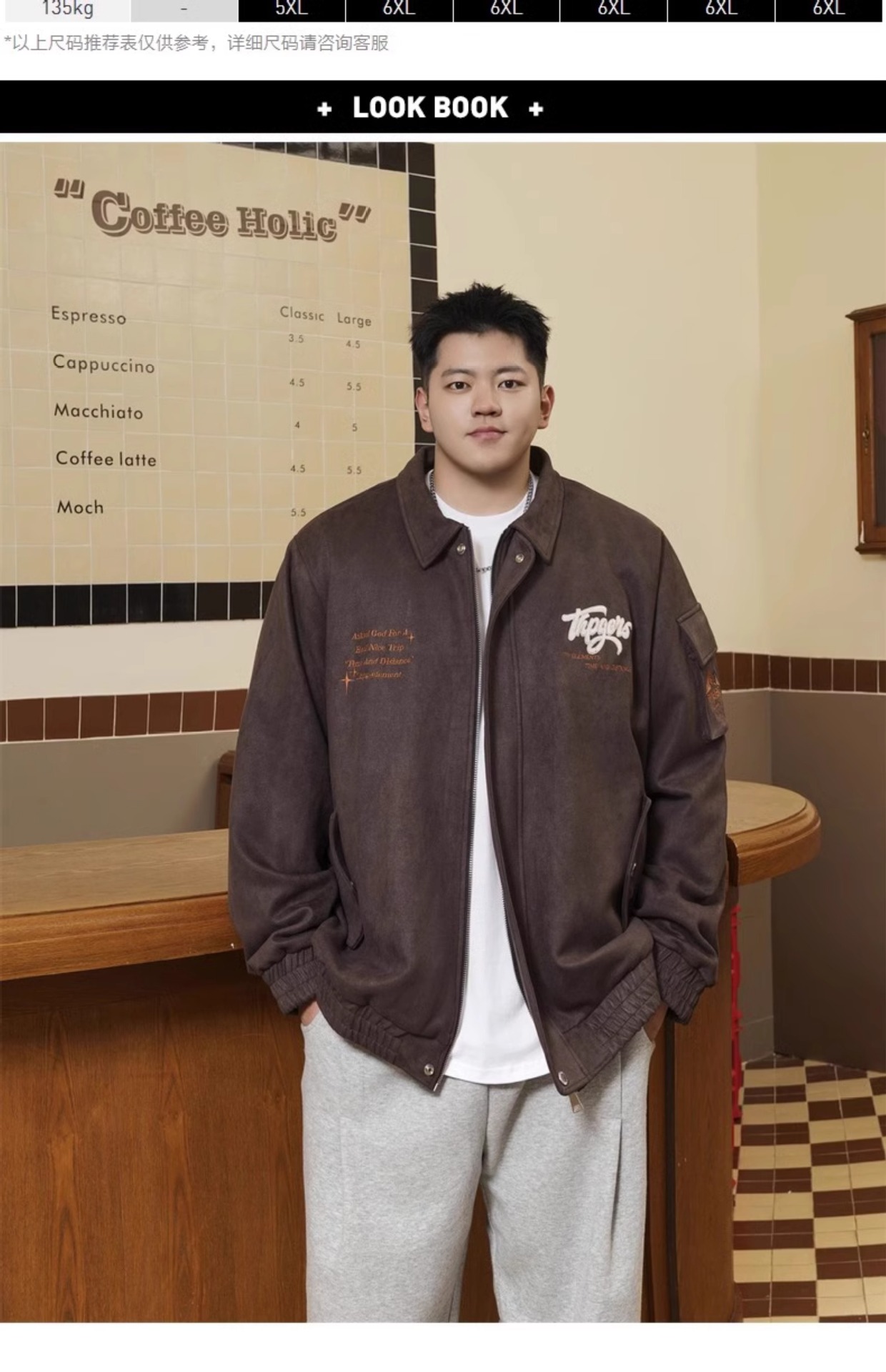 남성용 캐주얼 재킷 유행 브랜드 플러스 사이즈 남성용 스웨이드 옷깃 코트 지방 느슨한 플러스 가을과 겨울용 지방 플러스 사이즈스토어 가기