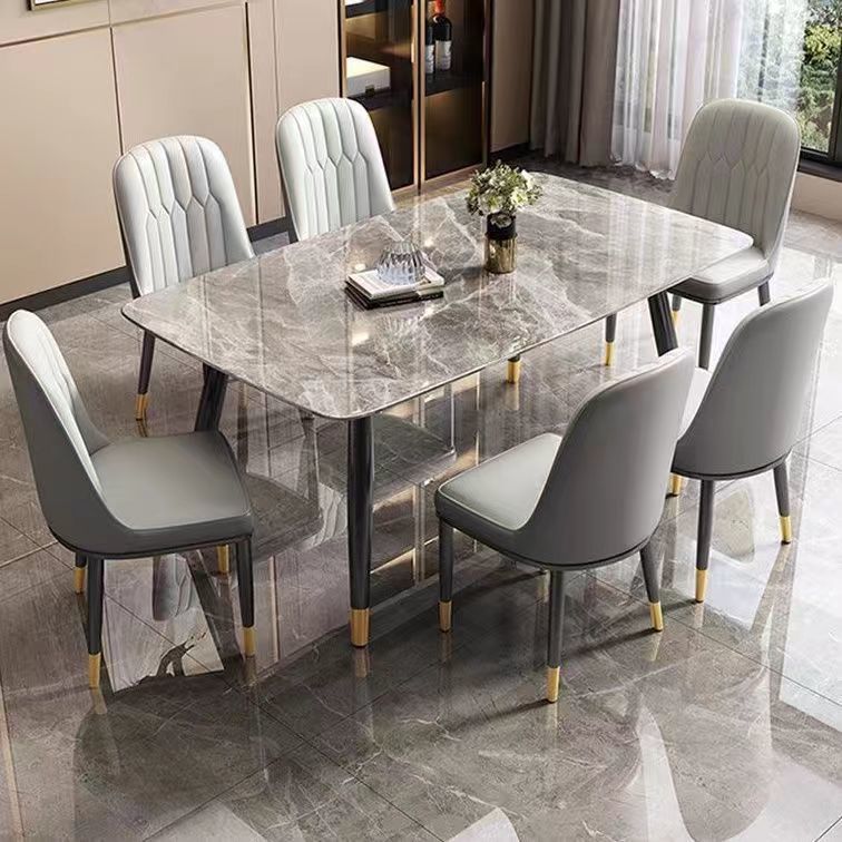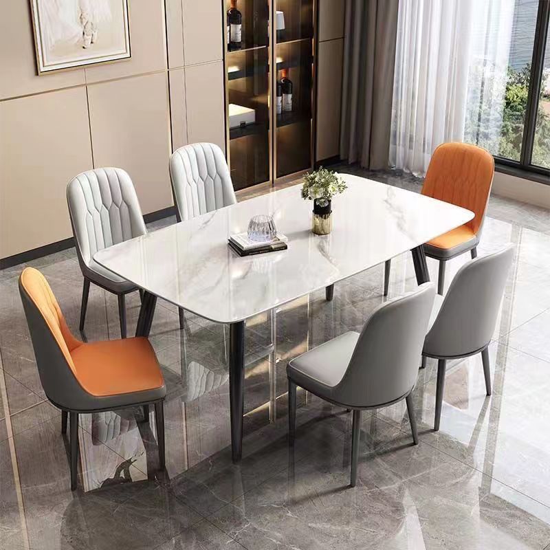 이탈리아 빛 럭셔리 록 보드 식탁 및 의자 조합 현대 간단한 작은 아파트 직사각형 임대 집 식탁 식탁