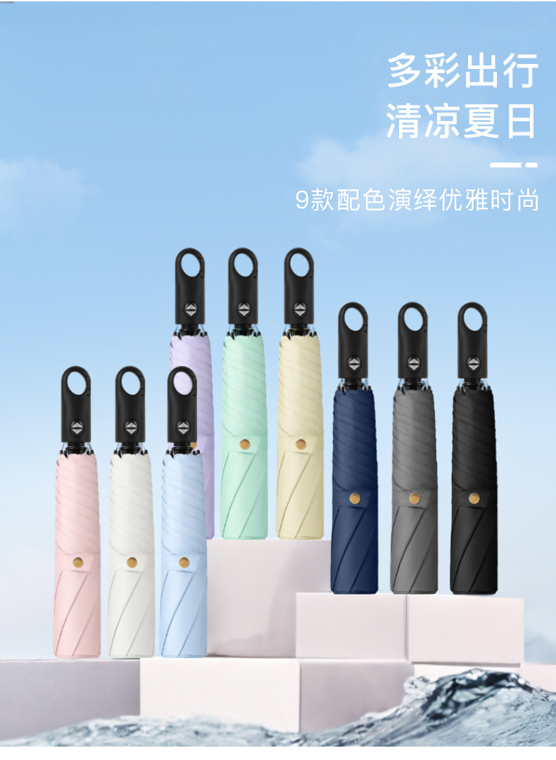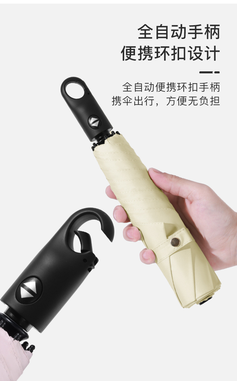 217g 울트라 라이트 우산 버클 우산 후크 완전 자동 깃털 우산 작은 우산 세 접히는 검은 접착제 태양 우산