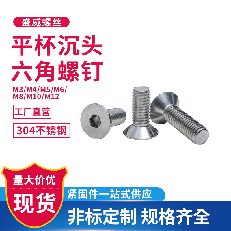304 스테인레스 스틸 육각형 소켓 나사 DIN7991 카운터 침몰 헤드 플랫 헤드 고강도 M3-M12 다중 사양 나사스토어 가기