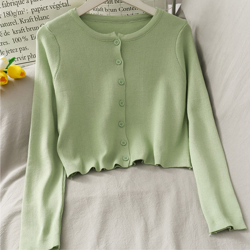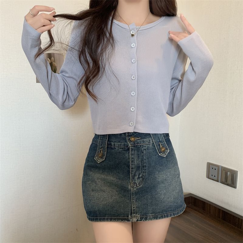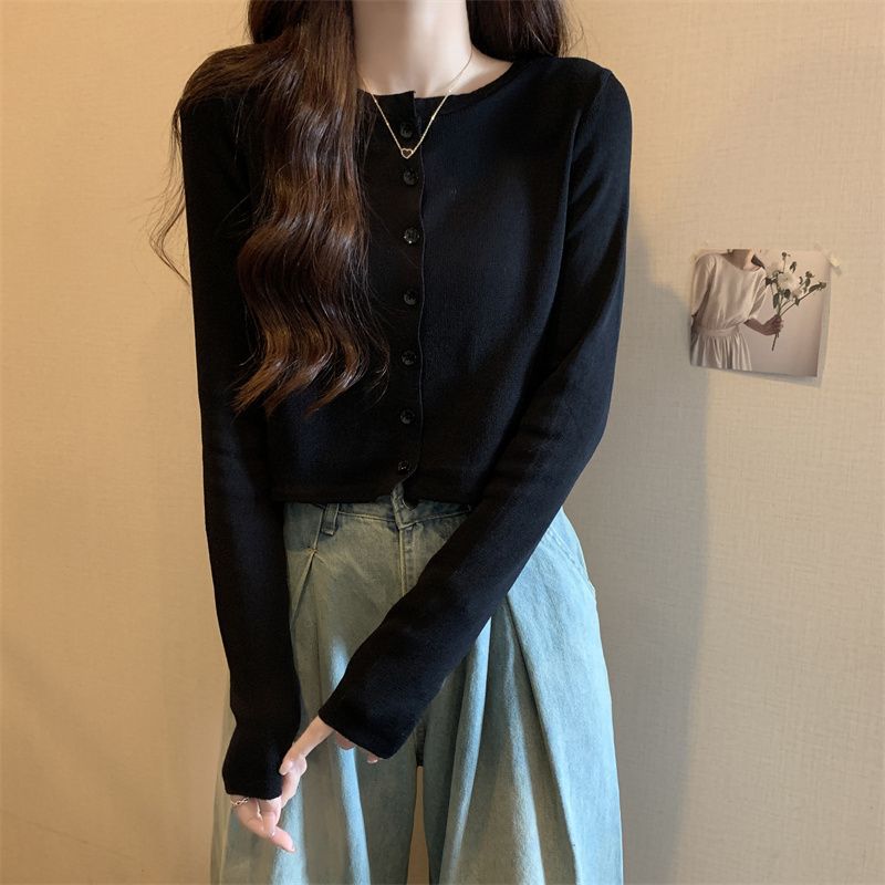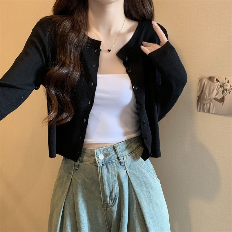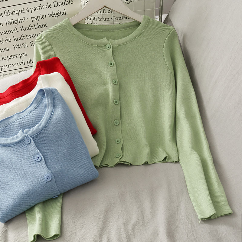 2025 여름 새로운 여성 한국 스타일 서양식 짧은 니트 자켓 탑 여성의 작은 몸 슬리밍 선 스크린스토어 가기