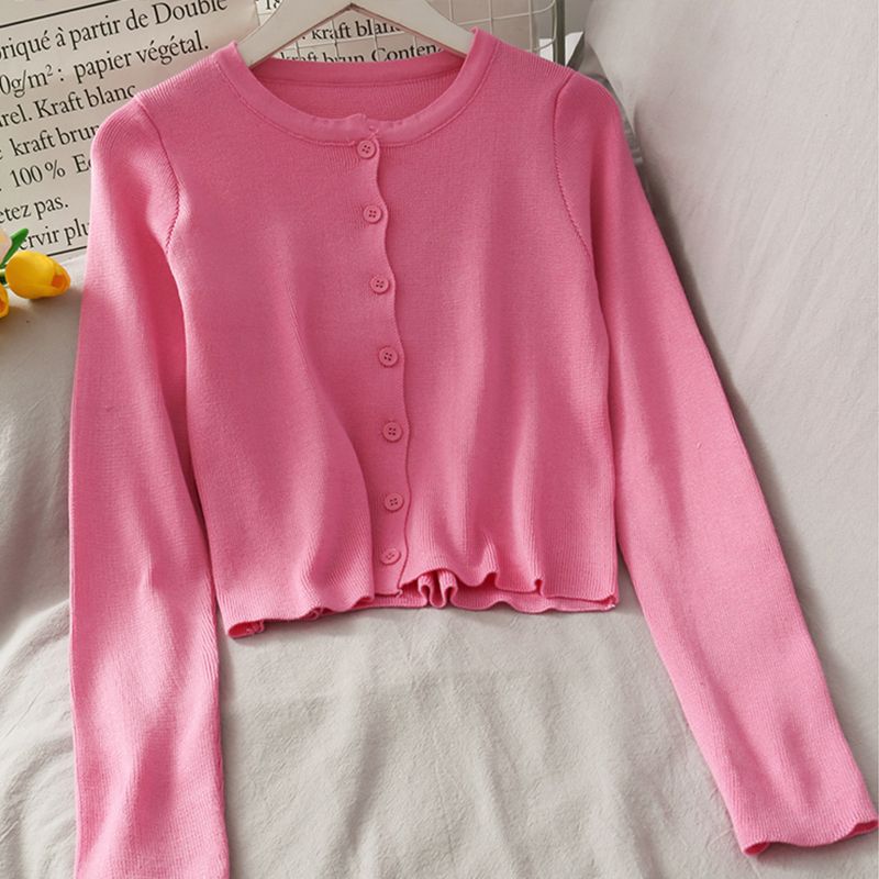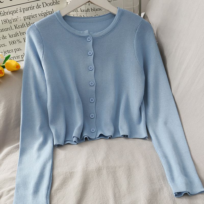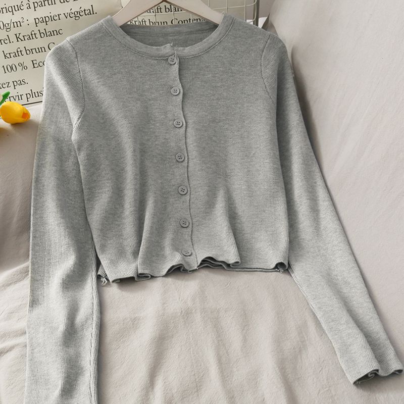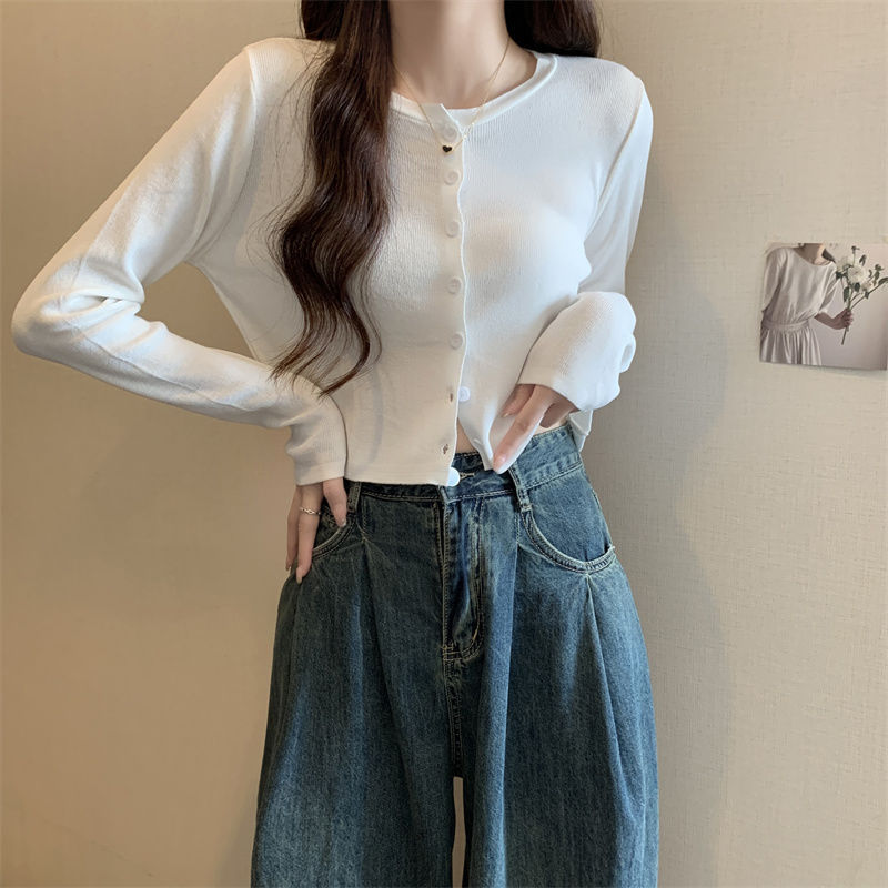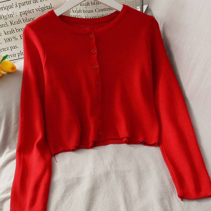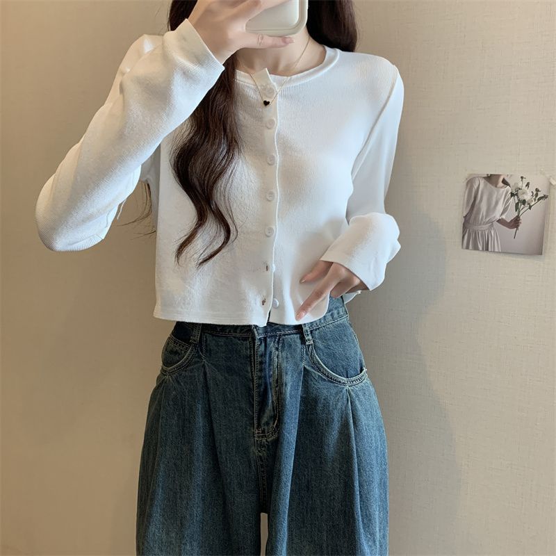 2025 여름 새로운 여성 한국 스타일 서양식 짧은 니트 자켓 탑 여성의 작은 몸 슬리밍 선 스크린스토어 가기