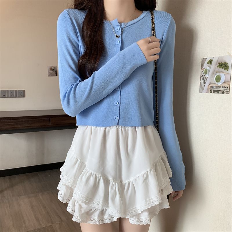 2025 여름 새로운 여성 한국 스타일 서양식 짧은 니트 자켓 탑 여성의 작은 몸 슬리밍 선 스크린