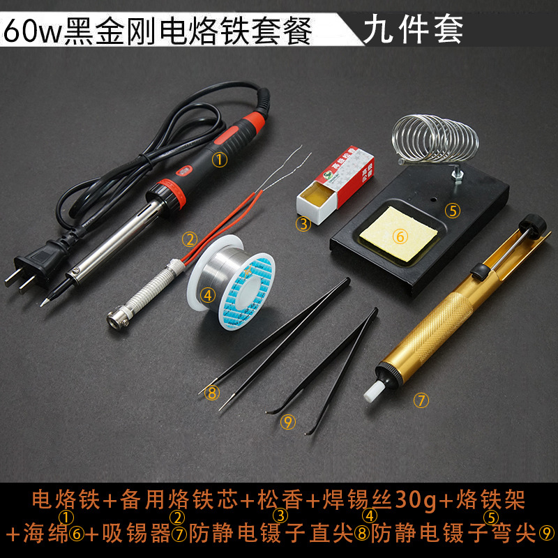 • 60W 블랙 다이아몬드 납땜 인두 9개 세트