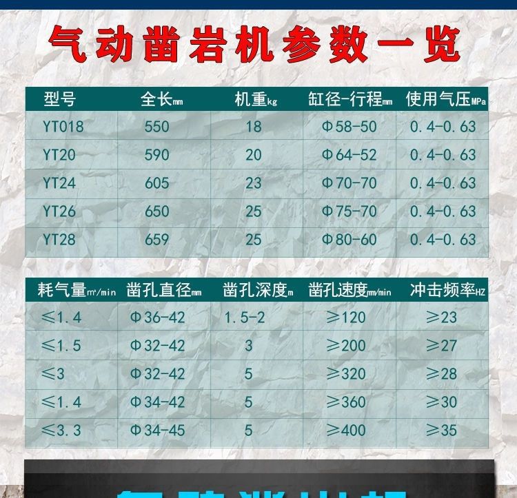 록 드릴 공압 드릴 공압 다리 유형 Tianshui 브랜드 YT28 YT24 Y020 Y018 다양한 모델의 드릴 비트 드릴 파이프 드릴 리그