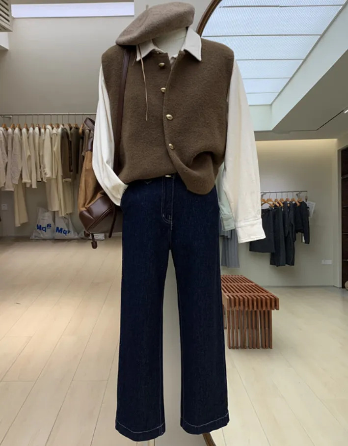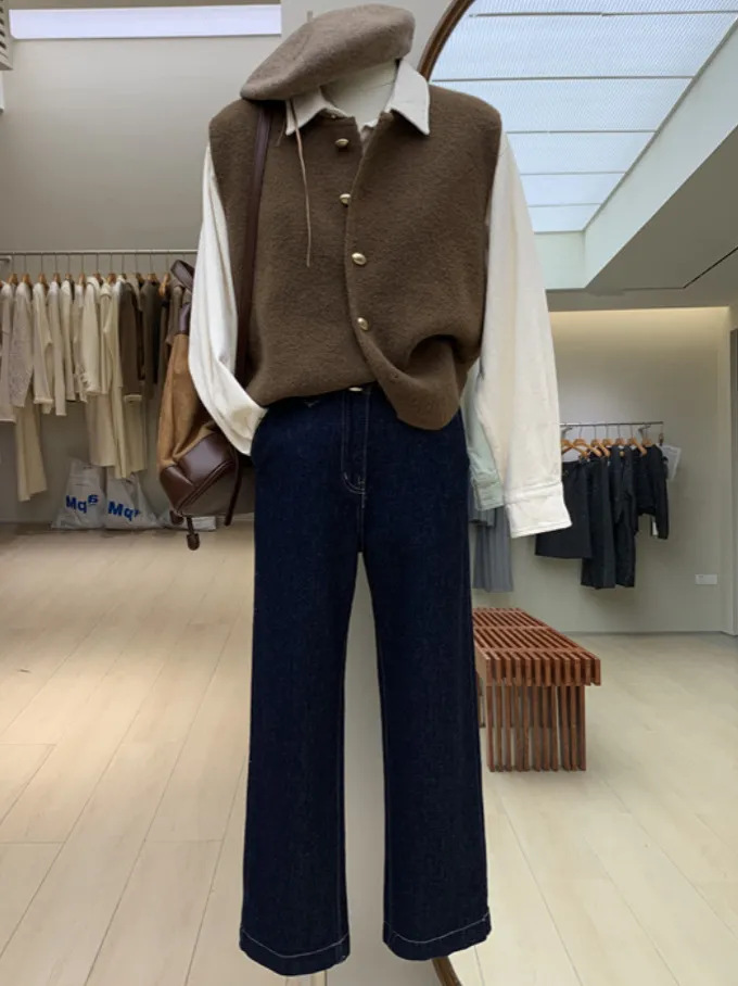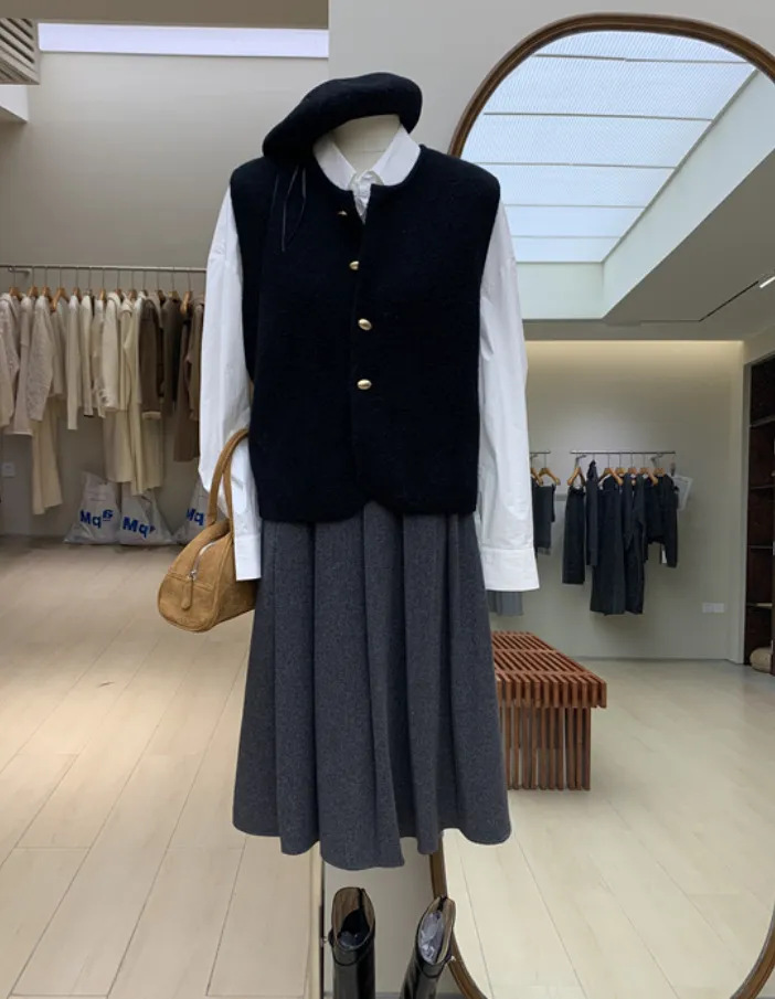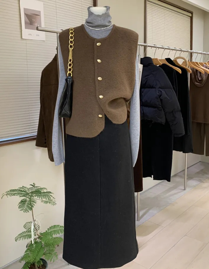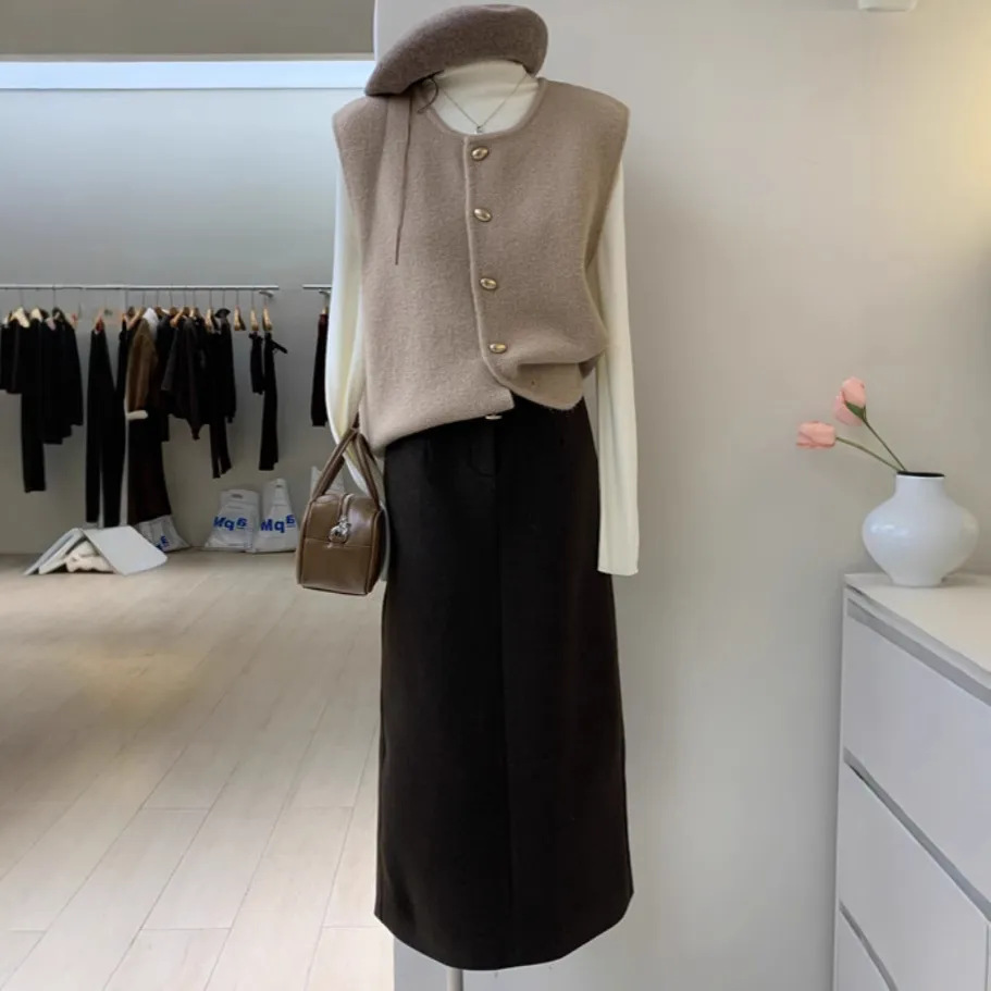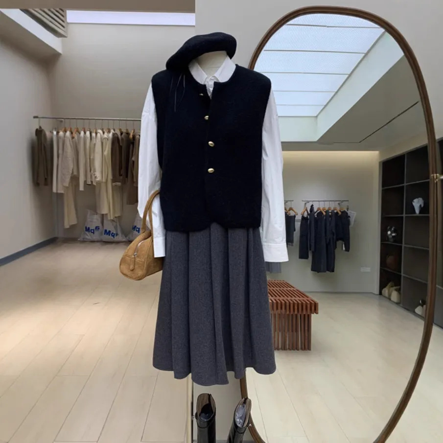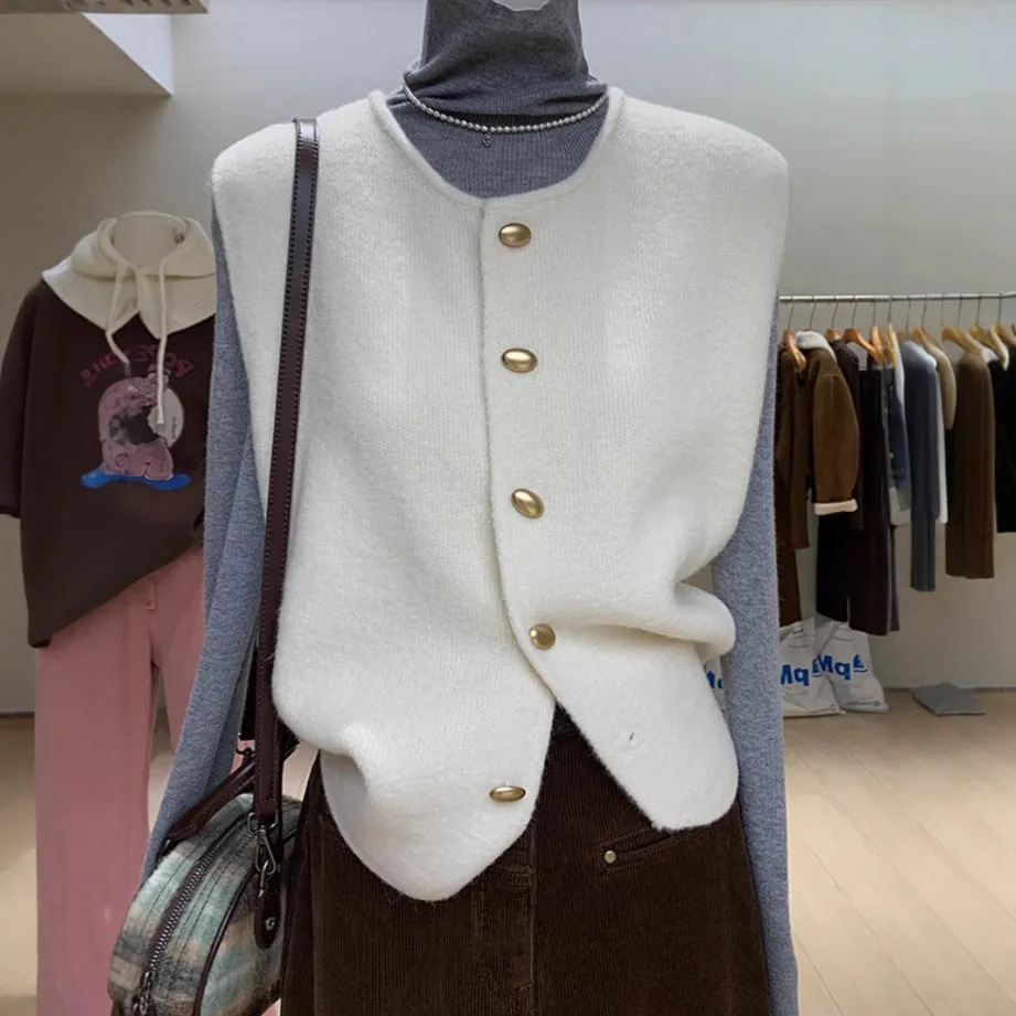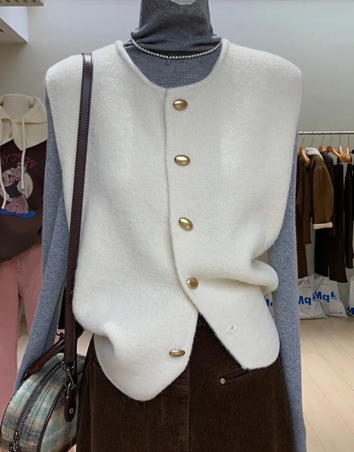纯色高级感金属扣马甲叠穿针织圆领开衫短外套学院风穿搭显气质女