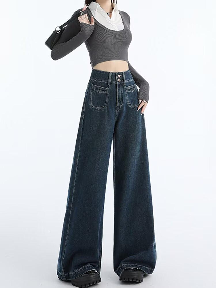청바지 여성용 스트레이트 느슨한 봄 가을과 겨울 2025 새로운 높은 허리 슬리밍 작은 넓은 다리 바닥 바지스토어 가기