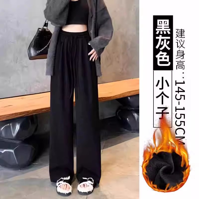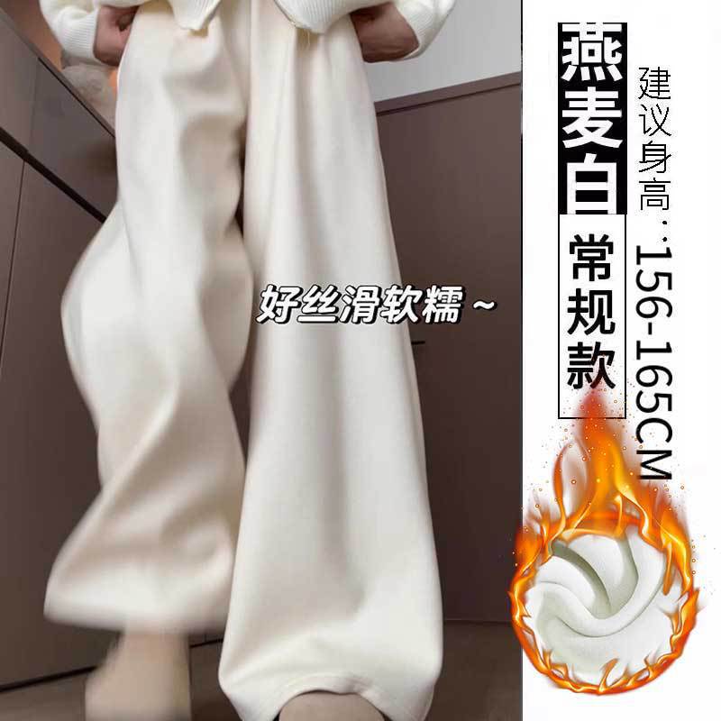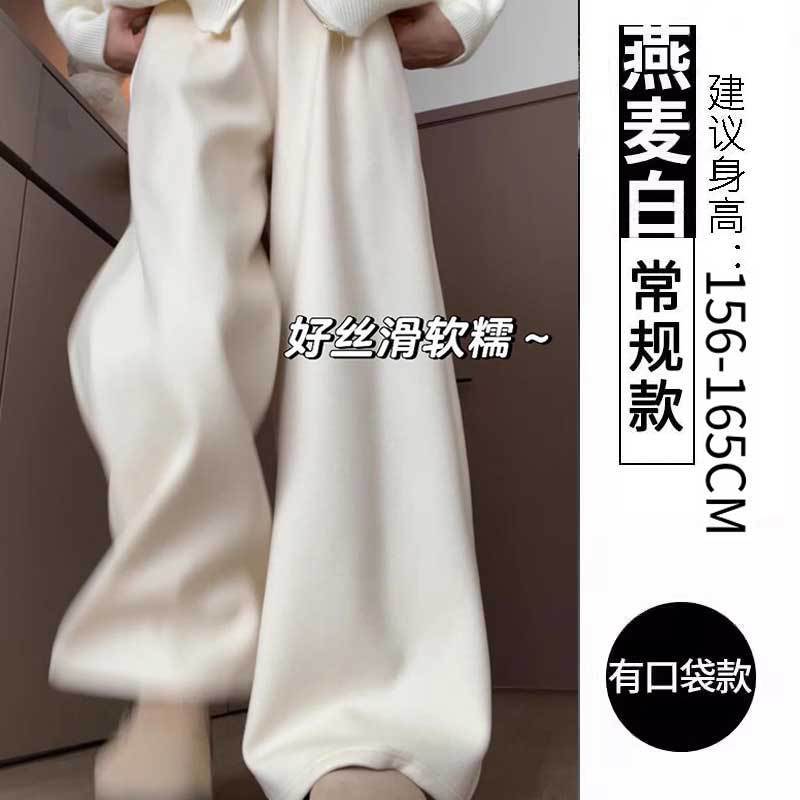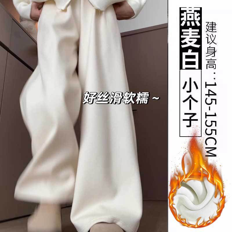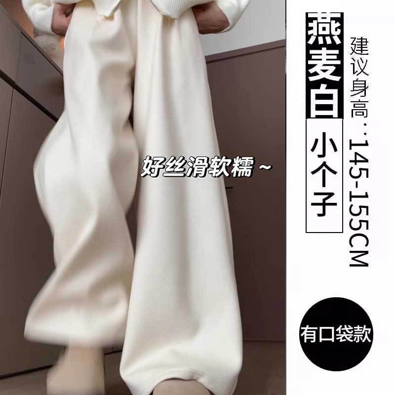 145 작은 흰색 찹쌀 바지 여성의 봄 가을과 겨울 150 높은 허리 느슨한 스트레이트 기모 캐시미어 와이드 레그 바지스토어 가기