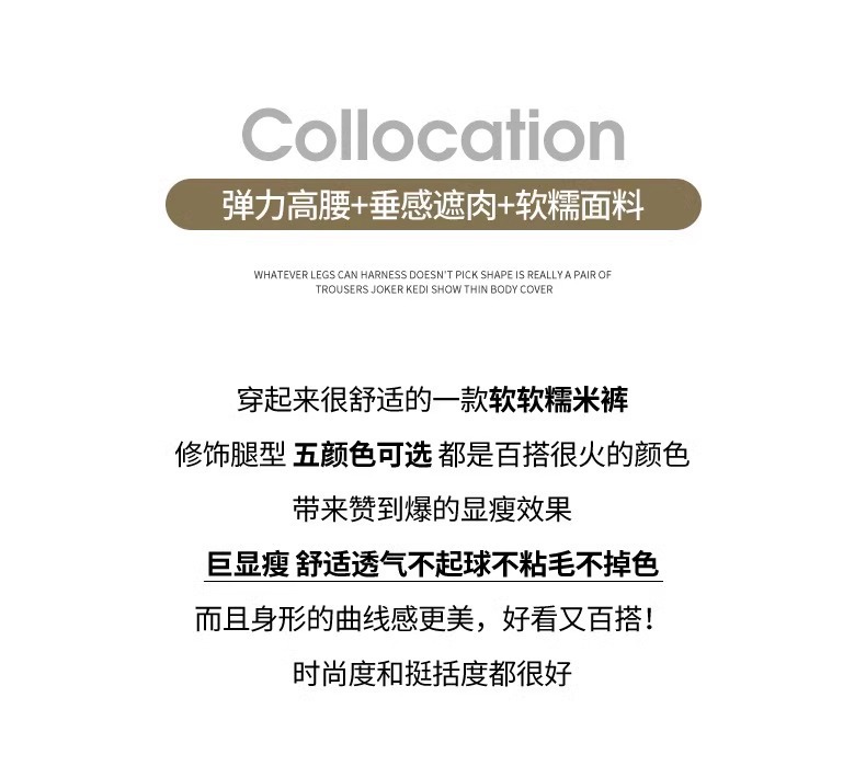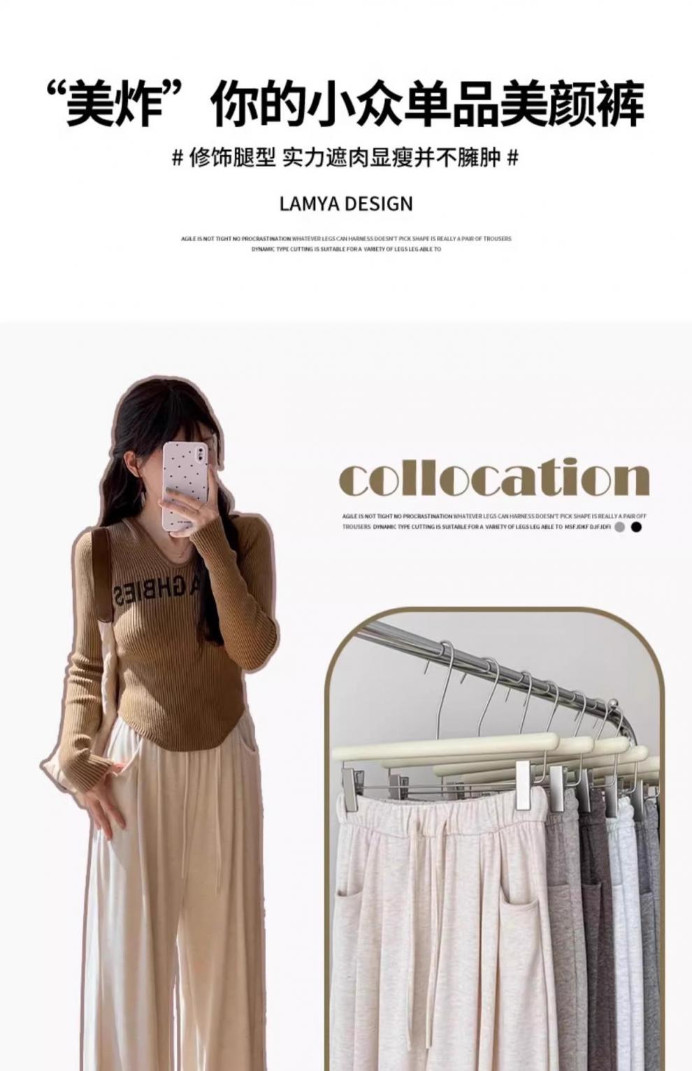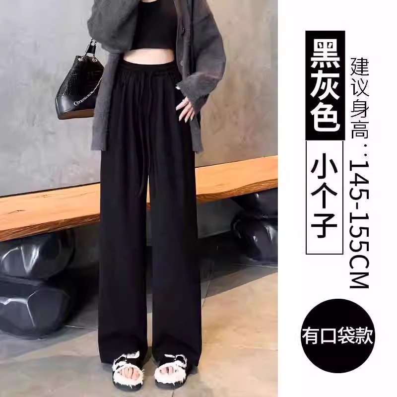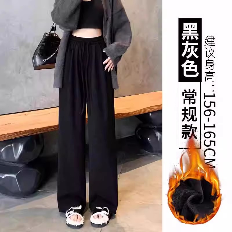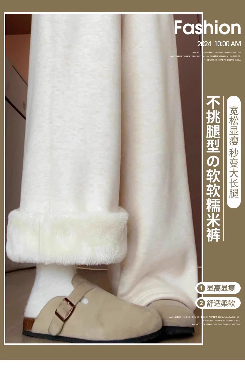 145 작은 흰색 찹쌀 바지 여성의 봄 가을과 겨울 150 높은 허리 느슨한 스트레이트 기모 캐시미어 와이드 레그 바지스토어 가기