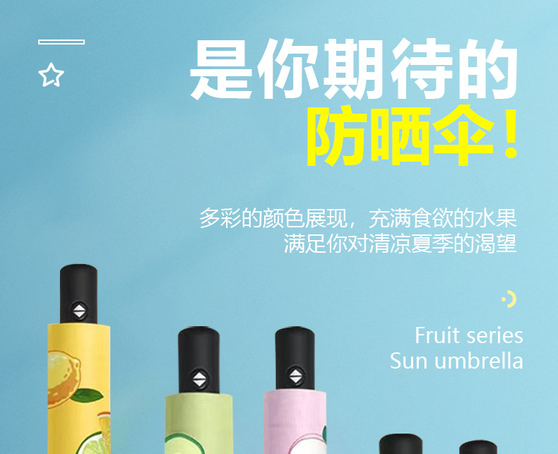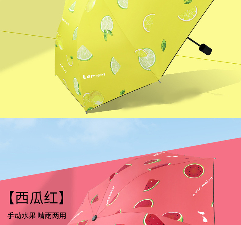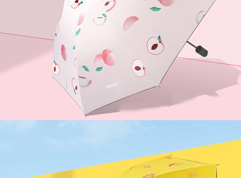 신선한 과일 우산 학생 접이식 자외선 자외선 자외선 차양 여성 이중 사용 태양 우산 접이식 도매스토어 가기