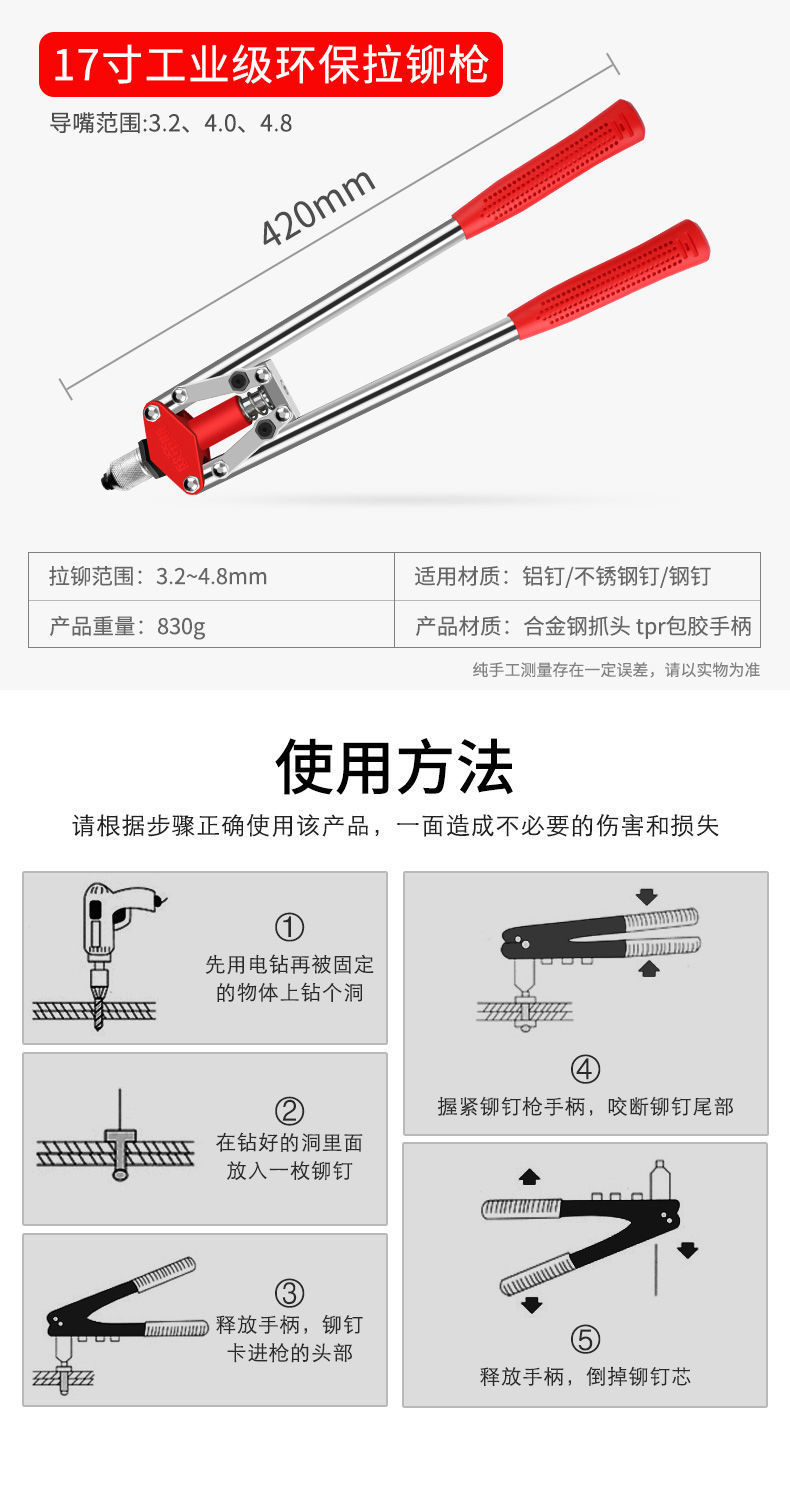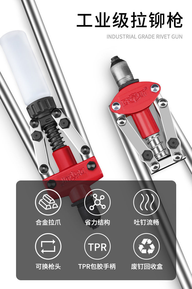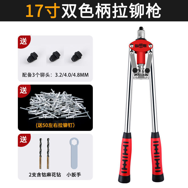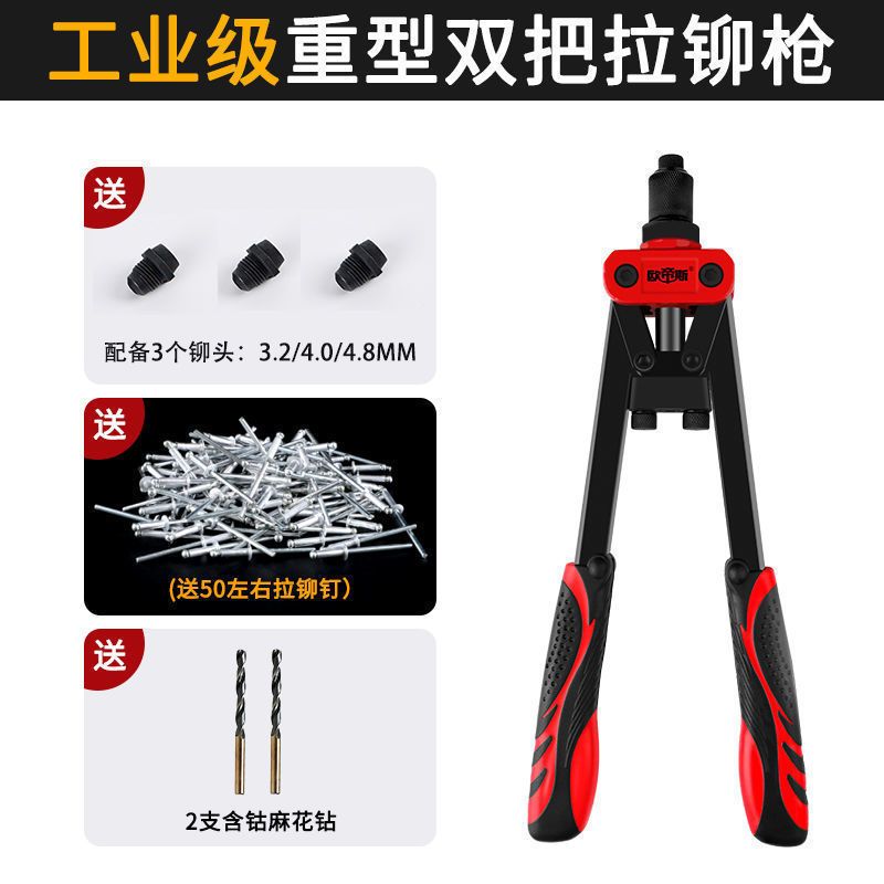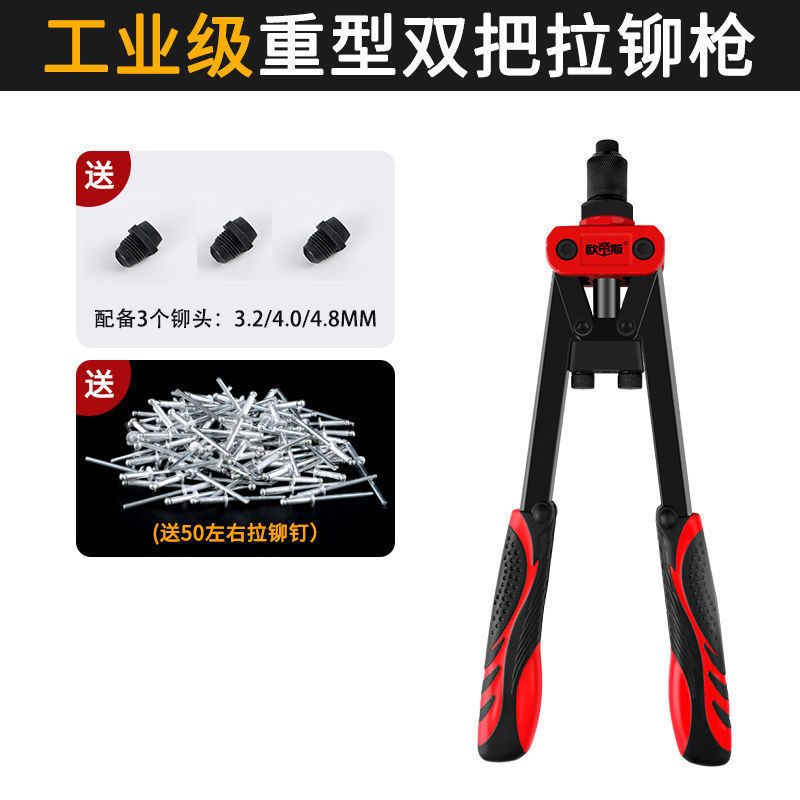 • 견고한 이중 핸들 노동 절약형 리벳 건 + 리벳 50개