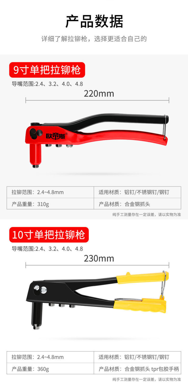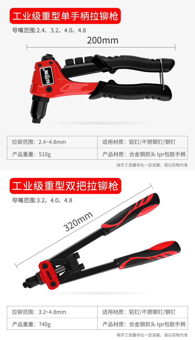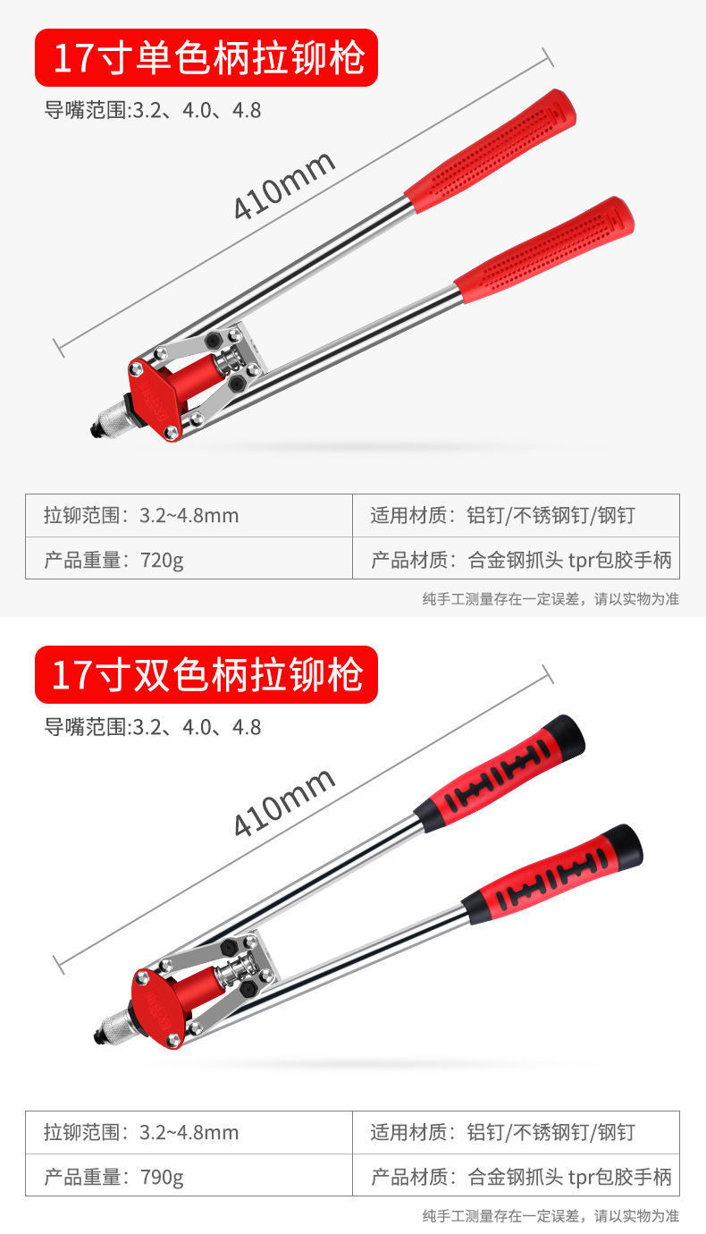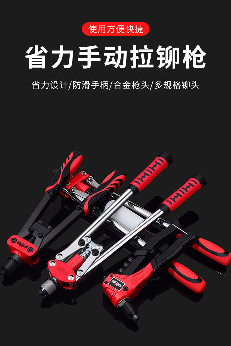 • 견고한 이중 핸들 노동 절약형 리벳 건 + 리벳 50개