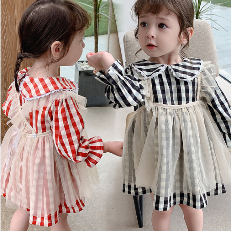 여자 세트 메쉬 조끼 스커트 플러스 줄무늬 원피스 인형 스커트 25 가을 새로운 대외 무역 아동복스토어 가기