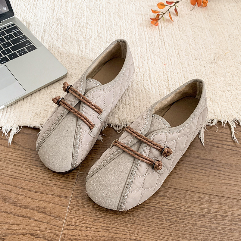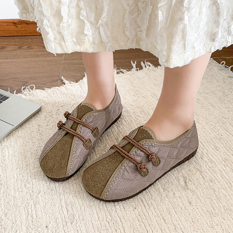 2025 새로운 빈티지 민족 스타일 버클 완두콩 신발 스웨이드 소프트 하단 캐주얼 슬립 온 편안한 플랫 코튼 슈즈