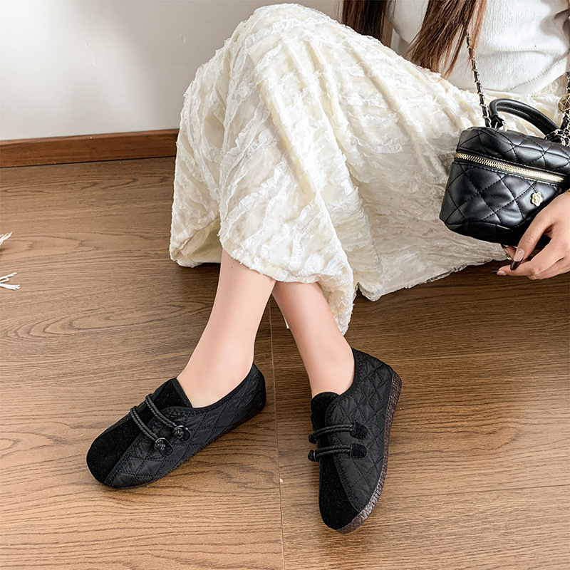 2025 새로운 빈티지 민족 스타일 버클 완두콩 신발 스웨이드 소프트 하단 캐주얼 슬립 온 편안한 플랫 코튼 슈즈스토어 가기