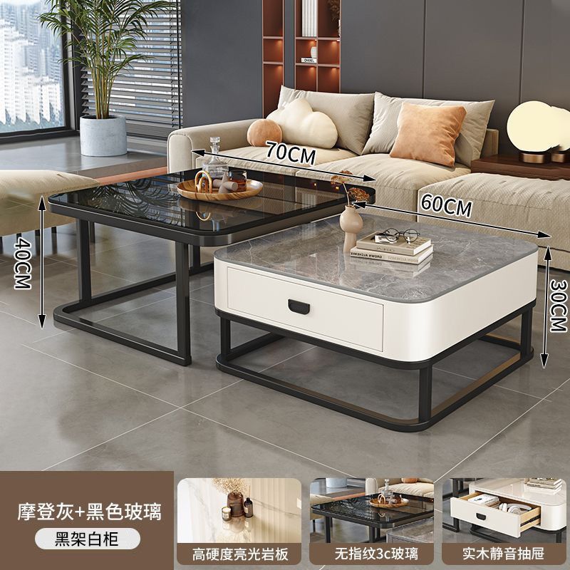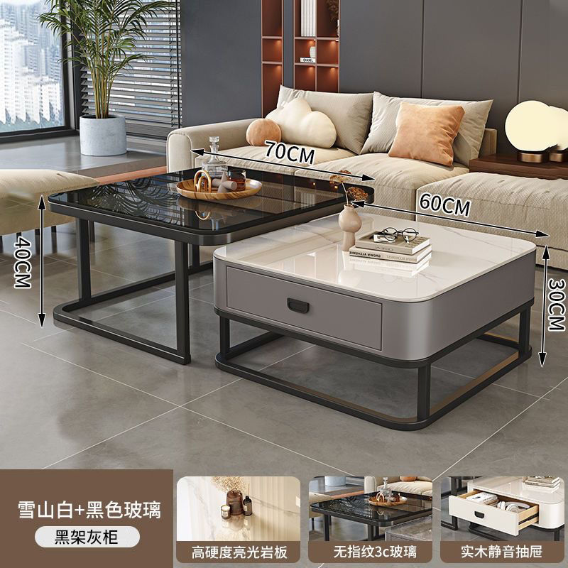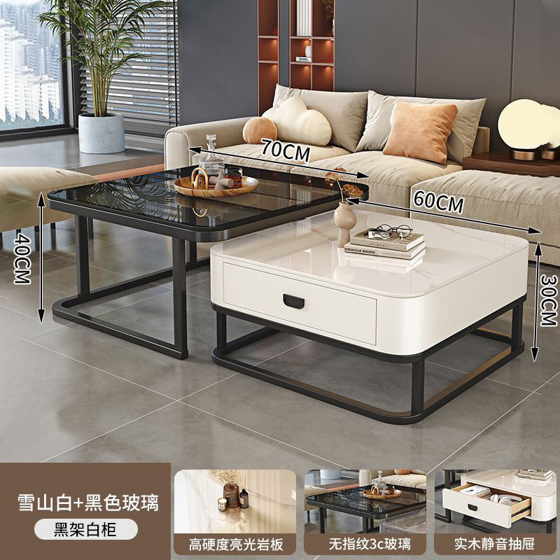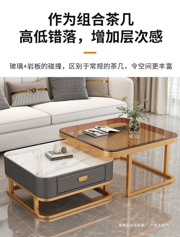 새로운 스타일의 인터넷 연예인 커피 테이블 거실 홈 현대 빛 럭셔리 작은 아파트 간단한 광장 유리 암판 접히는 조합스토어 가기