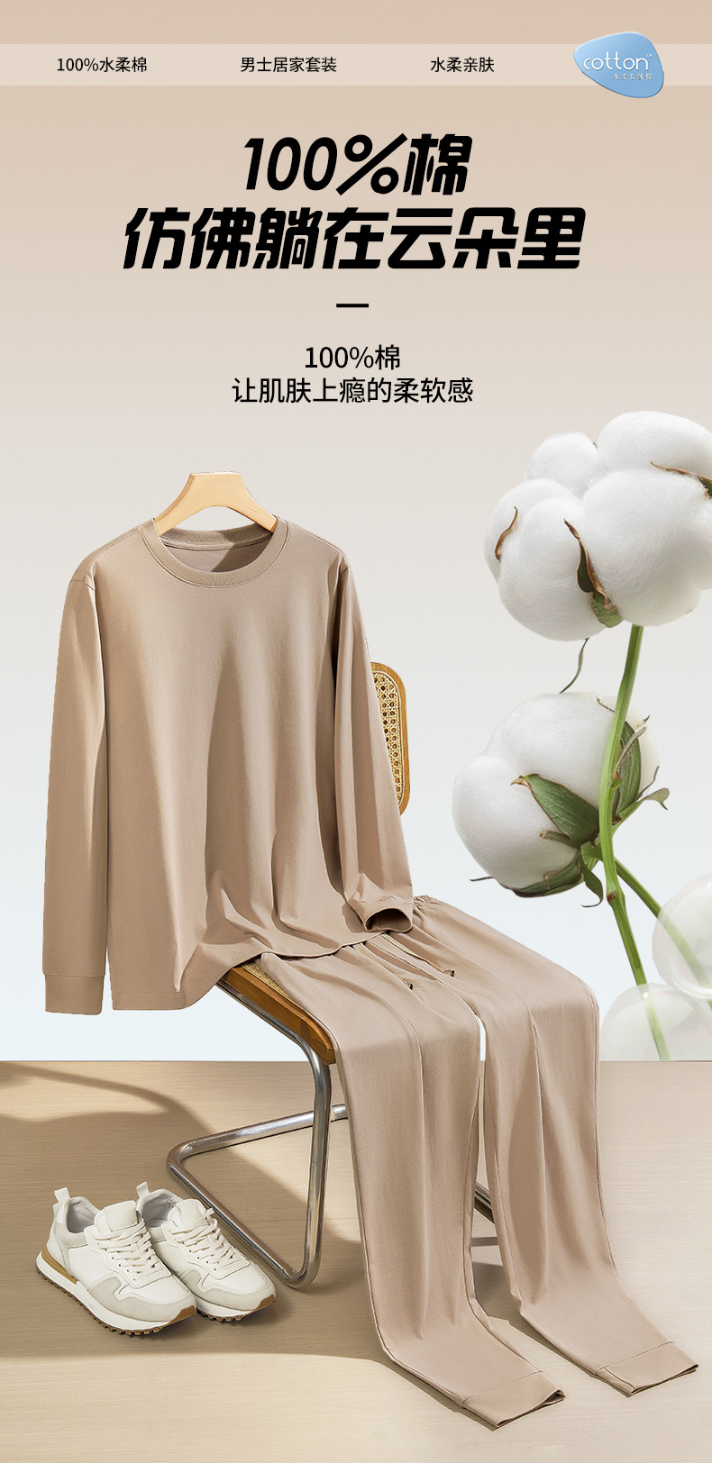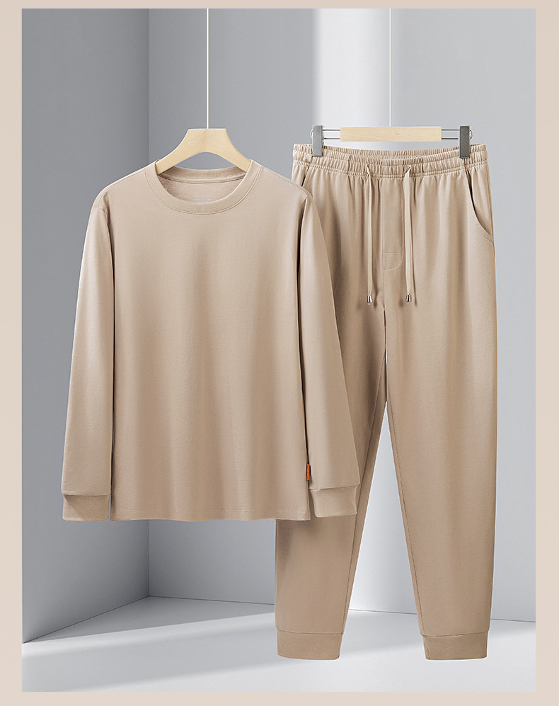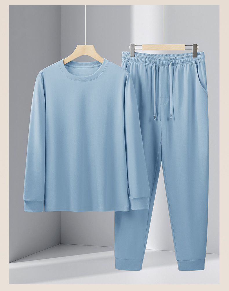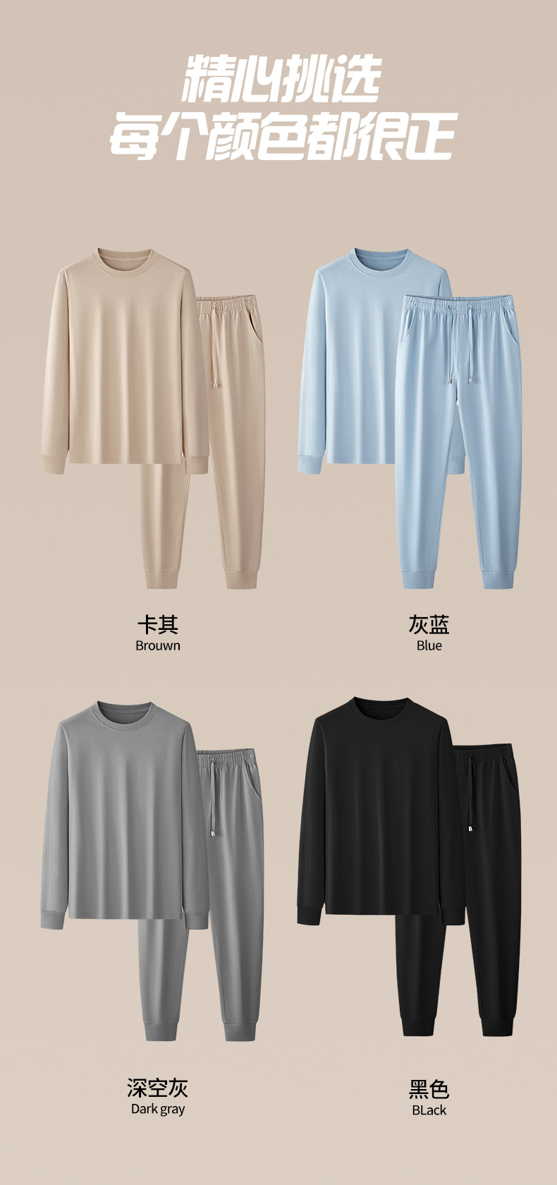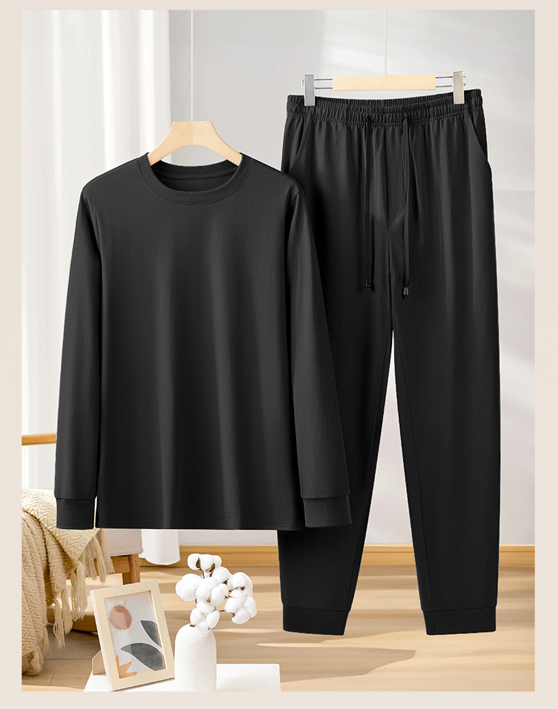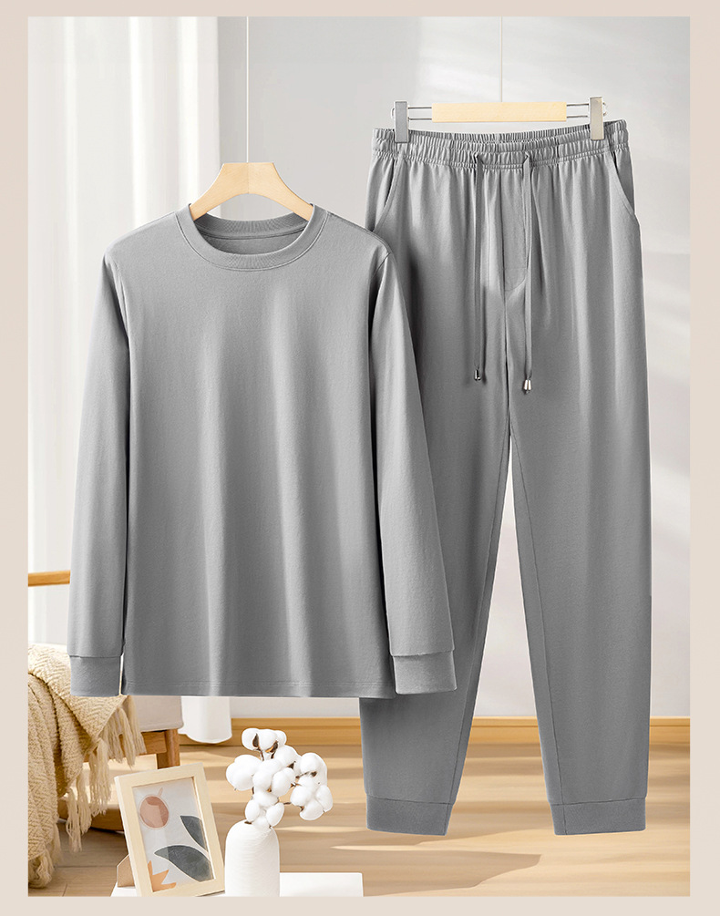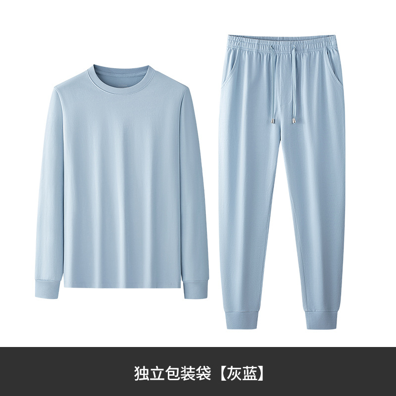 봄과 여름 새로운 남자의 휴식 면화 잠옷 세트 스포츠 솔리드 컬러 물 부드러운 면 홈 옷 세트 나갈 수 있습니다스토어 가기