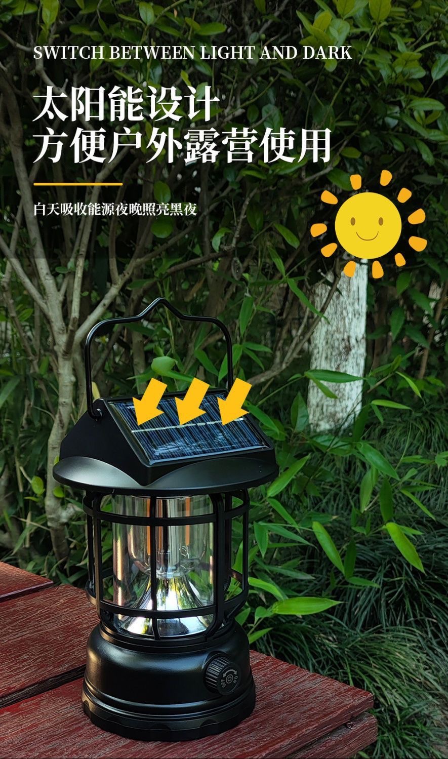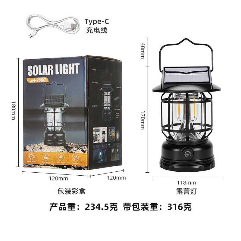 태양 복고풍 캠핑 램프 야외 조명 말 램프 긴 수명 충전 텐트 휴대용 램프 따뜻한 빛 대기 램프