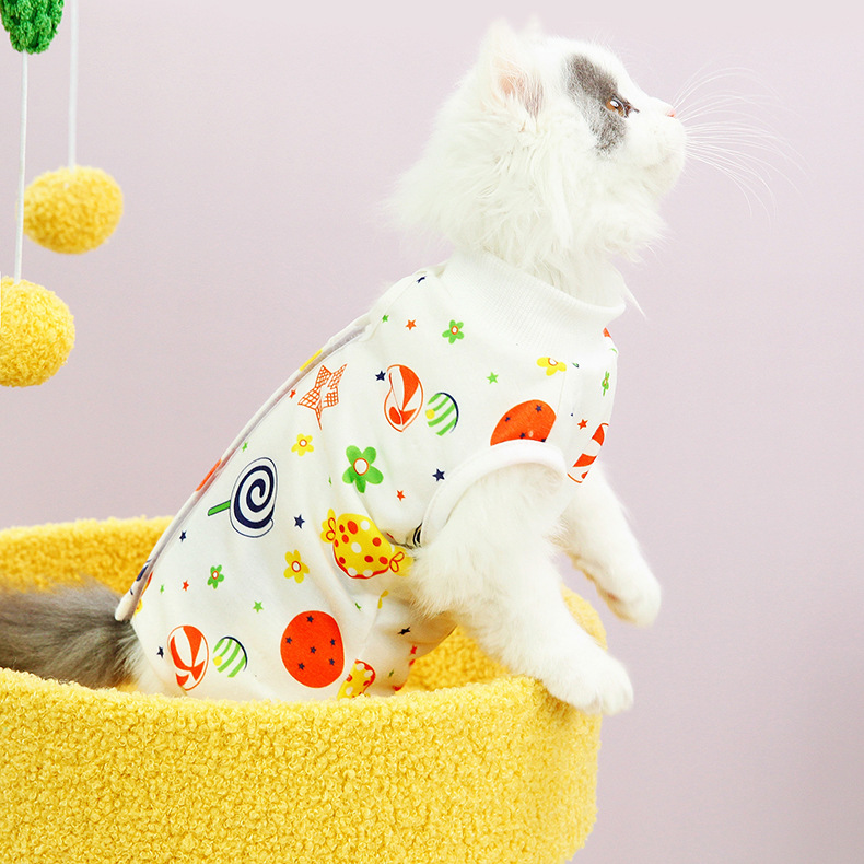 애완 고양이 수술복, 수술 후 중성화 의류, 산후 핥음 방지 이유식복, 폴리에스터 귀여운 의류 도매