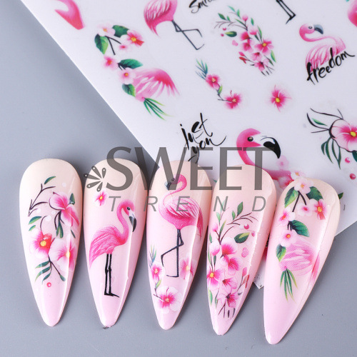 국경 간 새로운 네일 아트 스티커 바람 작은 신선한 봄 꽃 토끼 크레인 다시 접착제 네일 데칼 도매