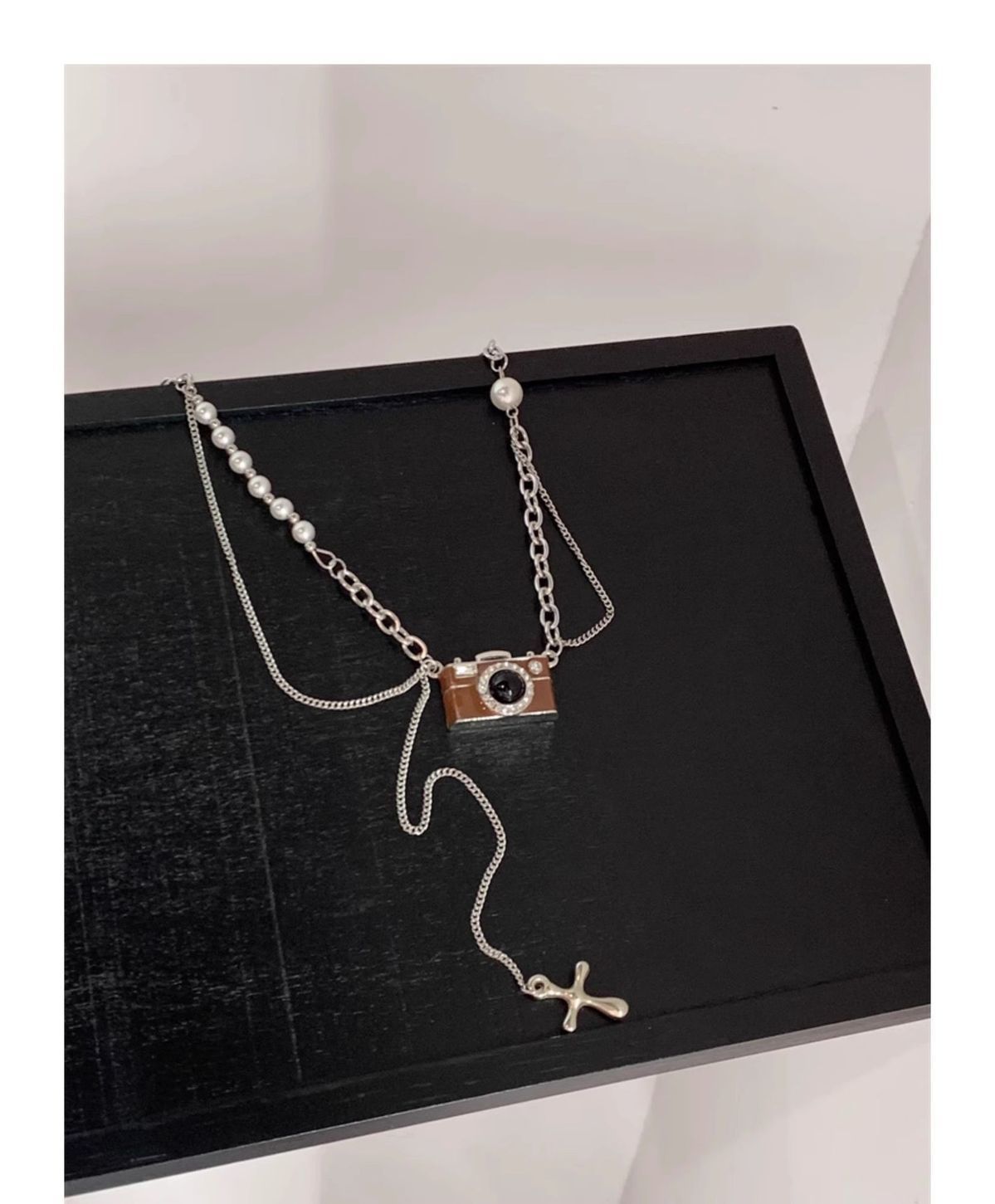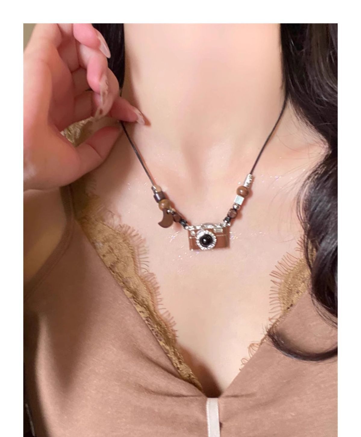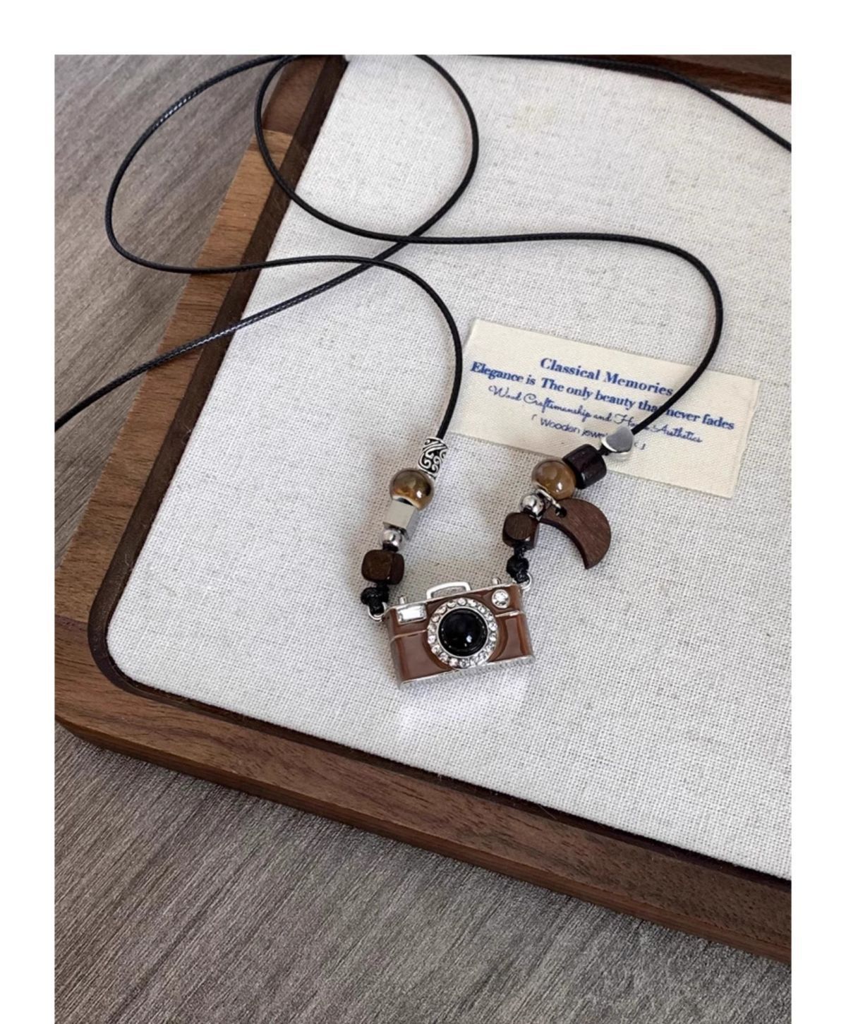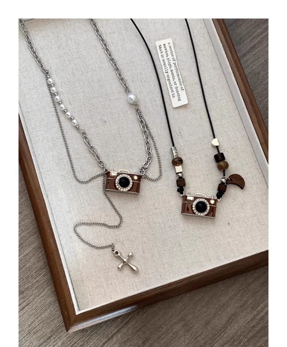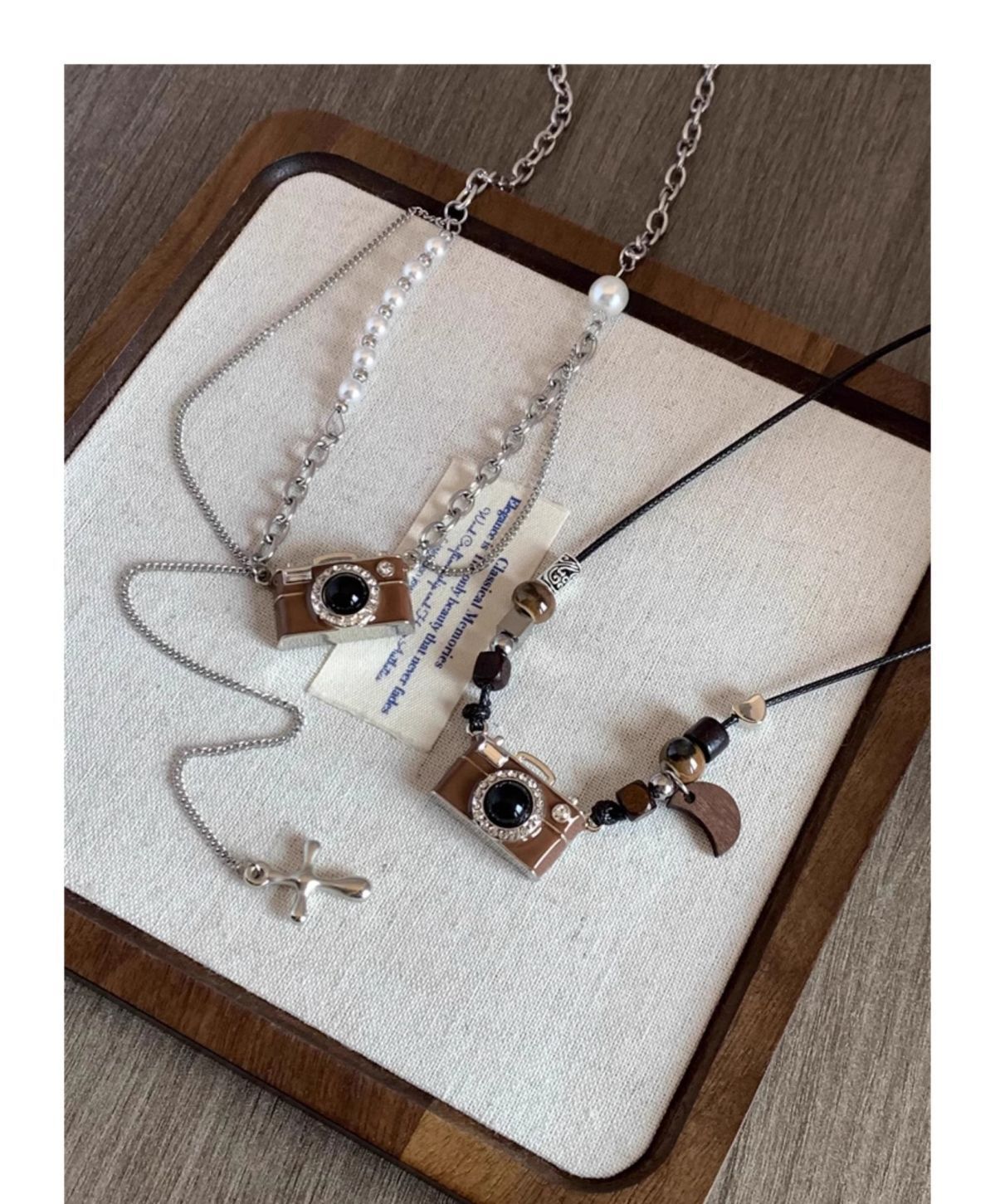 빈티지 다크 브라운 카메라 진주 목걸이 여성용 라이트 럭셔리 틈새 디자인 올 매치 독특한 긴 체인 울 체인 액세서리스토어 가기