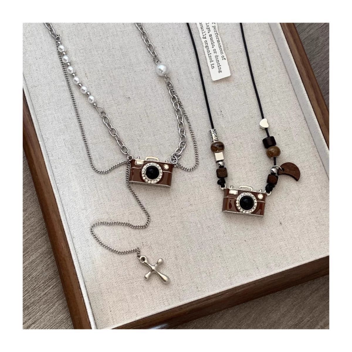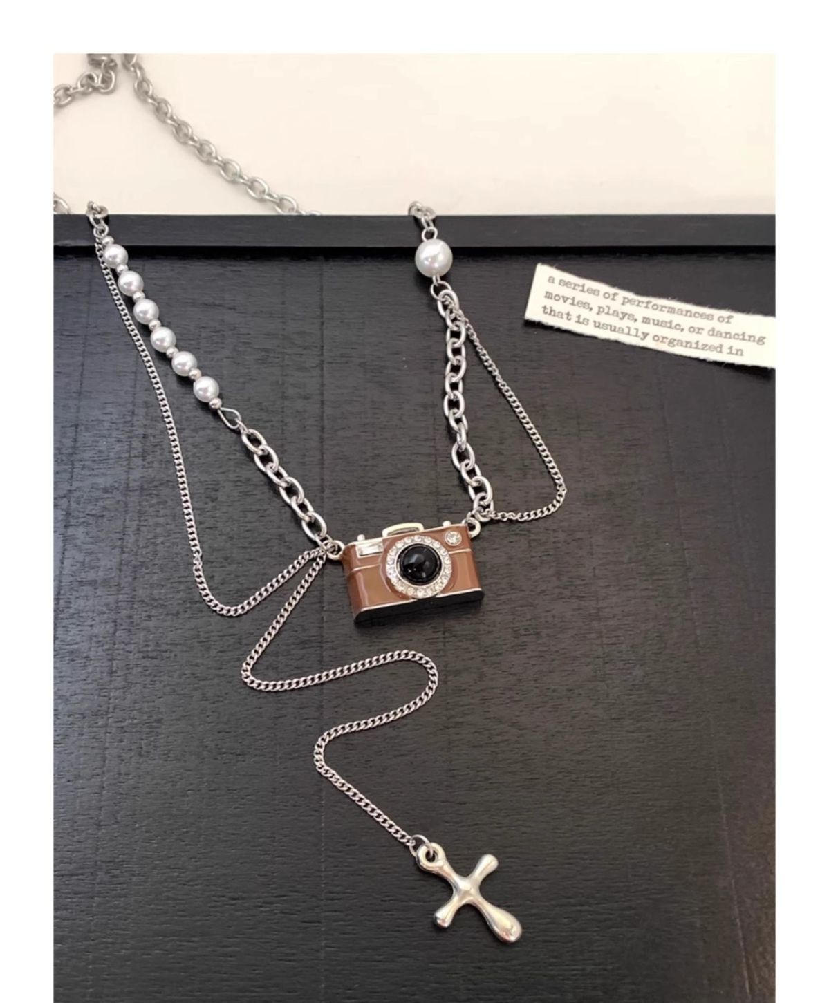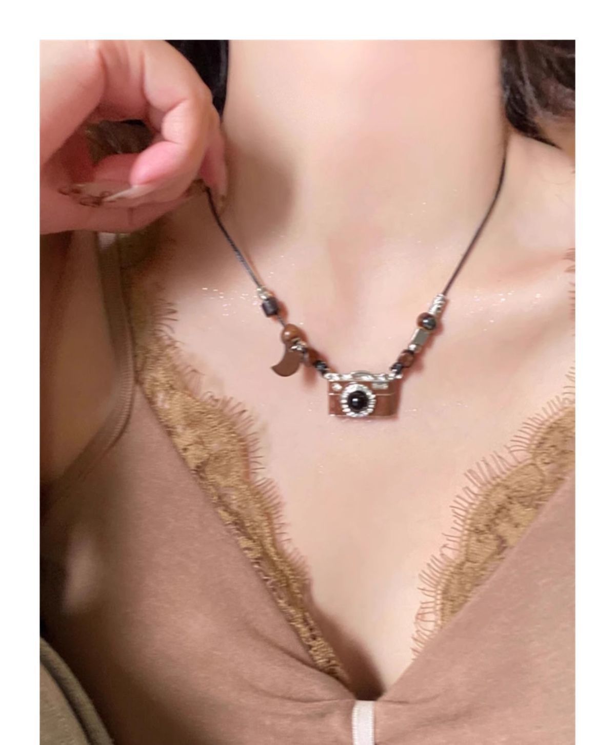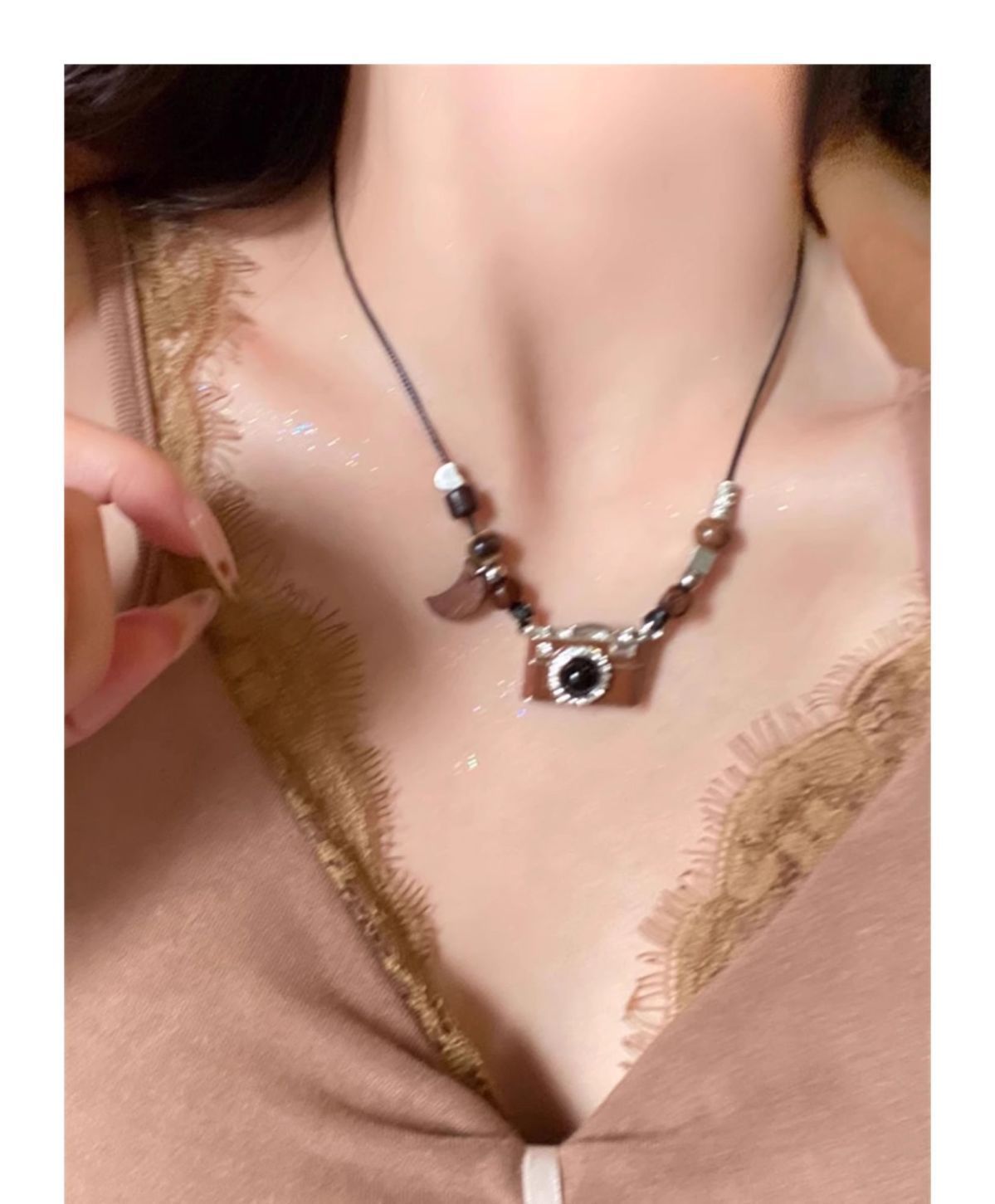 빈티지 다크 브라운 카메라 진주 목걸이 여성용 라이트 럭셔리 틈새 디자인 올 매치 독특한 긴 체인 울 체인 액세서리스토어 가기