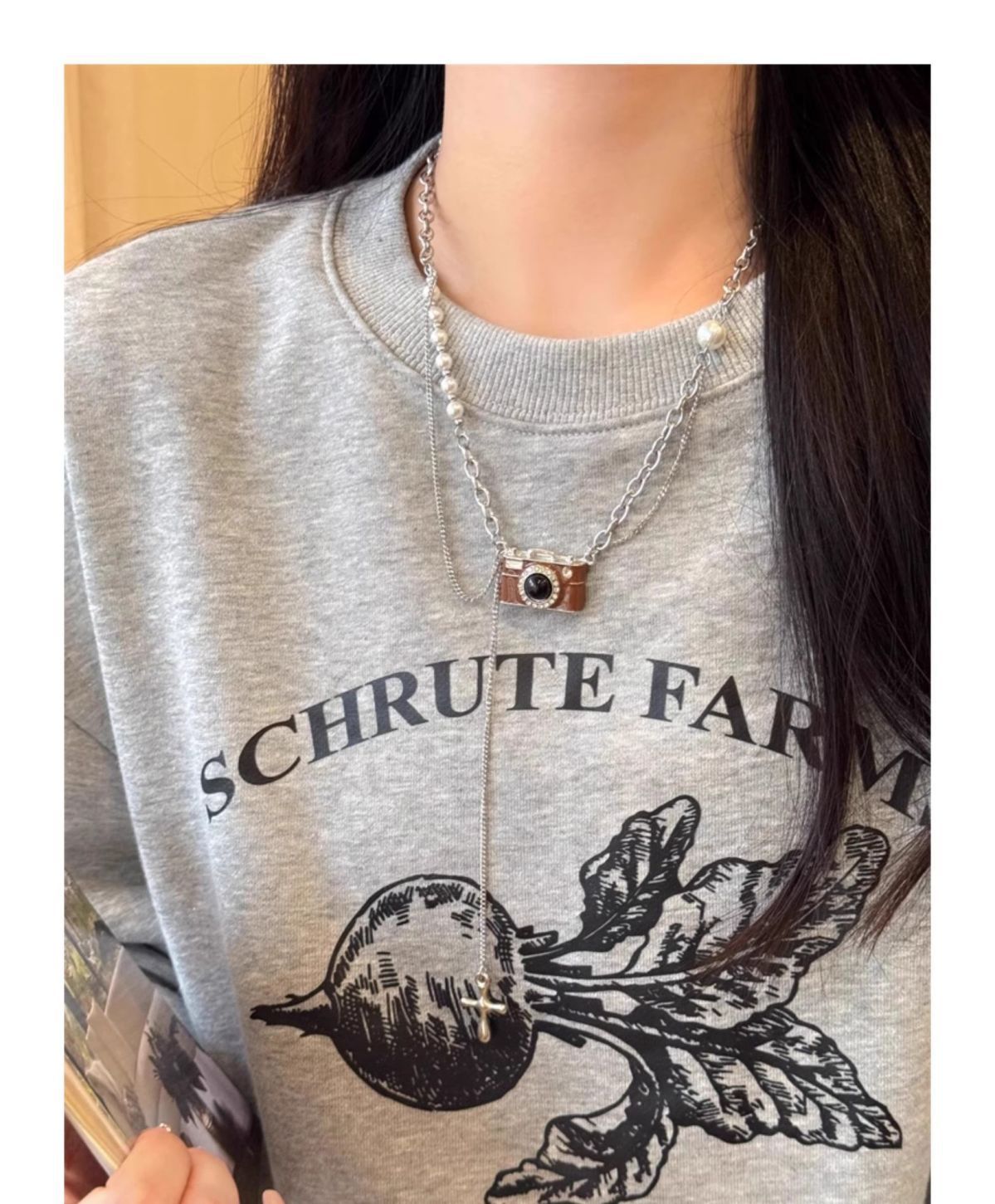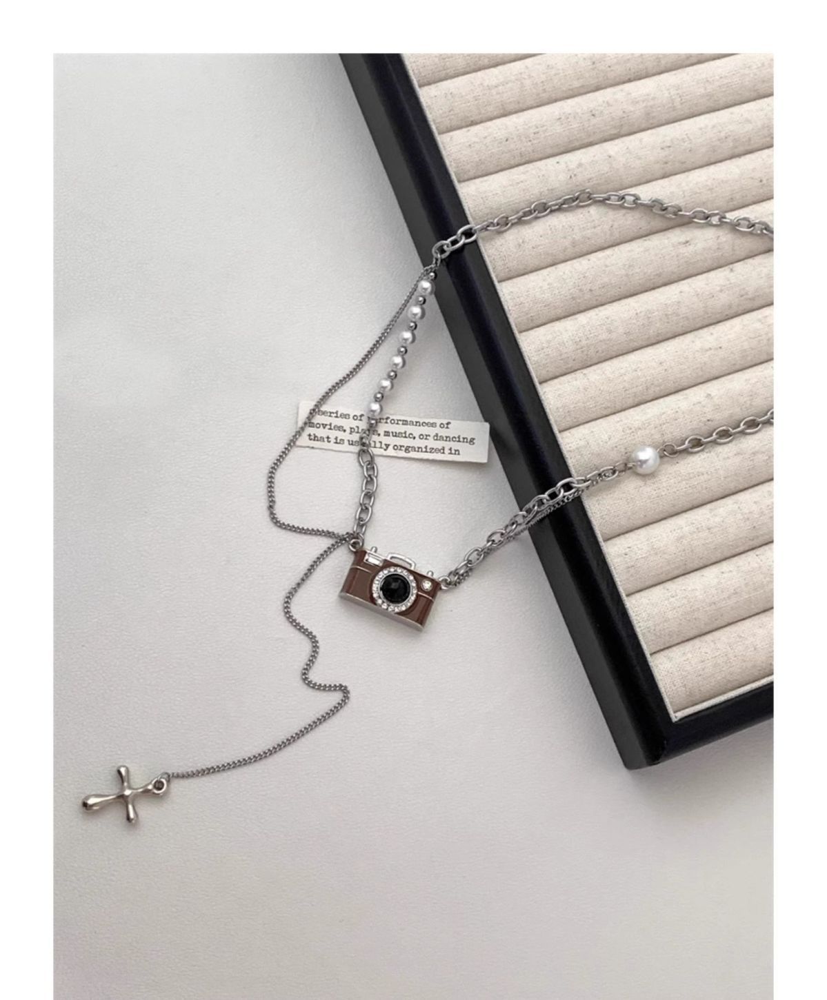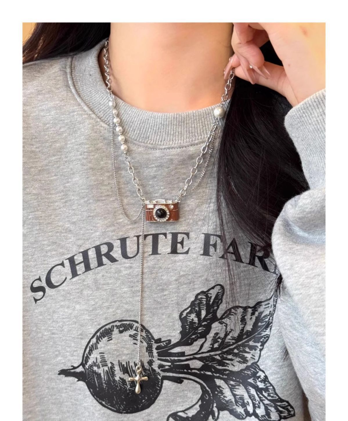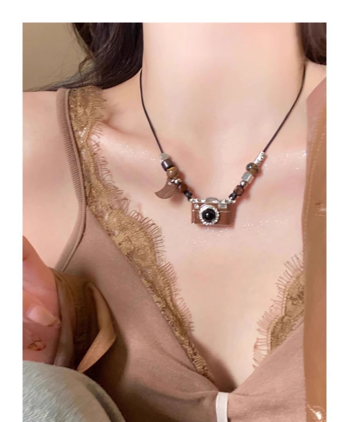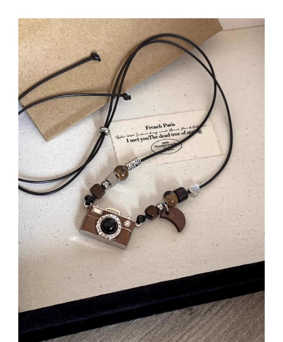 빈티지 다크 브라운 카메라 진주 목걸이 여성용 라이트 럭셔리 틈새 디자인 올 매치 독특한 긴 체인 울 체인 액세서리스토어 가기