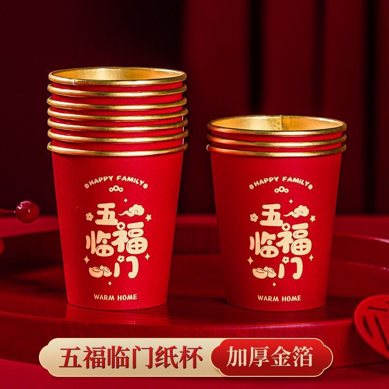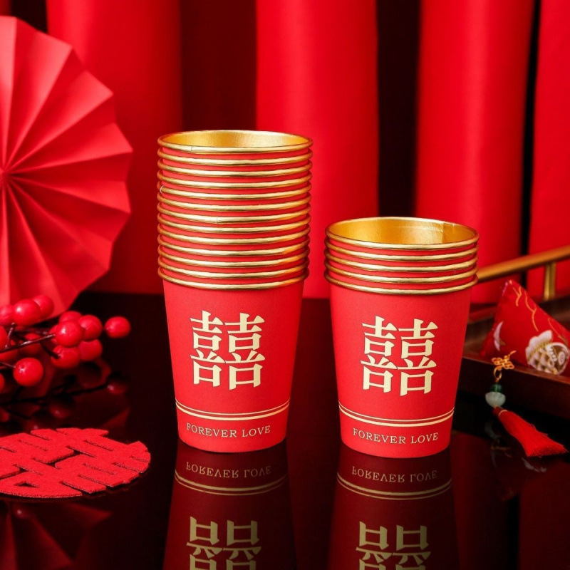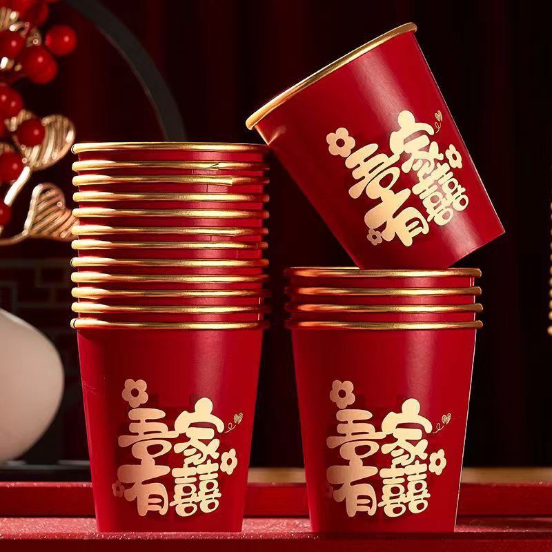 웨딩 일회용 종이컵 골드 호일 럭셔리 두꺼운 웨딩 컵 웨딩 연회 워터 컵 가정용 레드 웨딩 티 컵